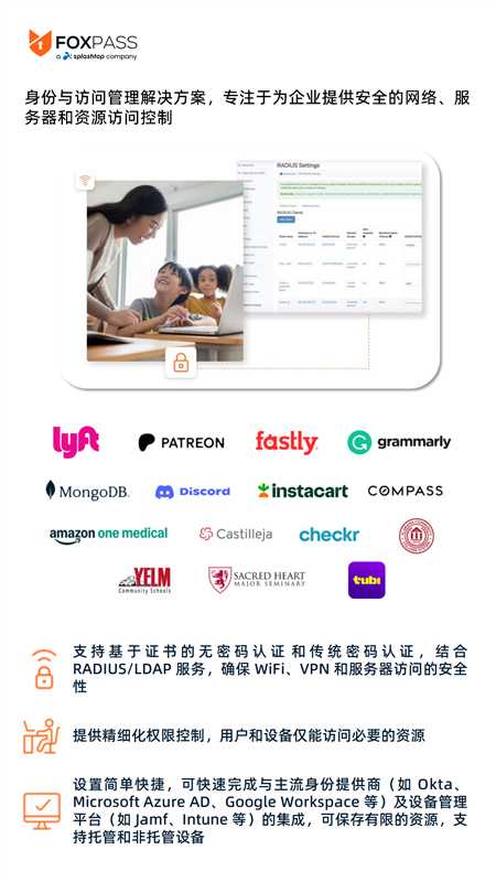 Foxpass 可与 Allbirds 现有 MDM(如 Kandji、Meraki)无缝集成,构建完整的安全框架。