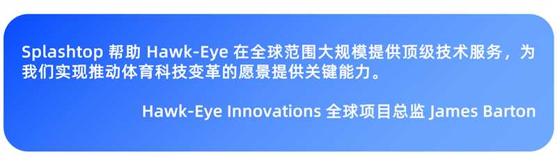 Splashtop 通过提供安全、灵活、高性能的远程访问能力,帮助 Hawk-Eye 提升运营效率、降低成本、增强持续性,并进一步巩固其在全球体育科技领域的领先地位。