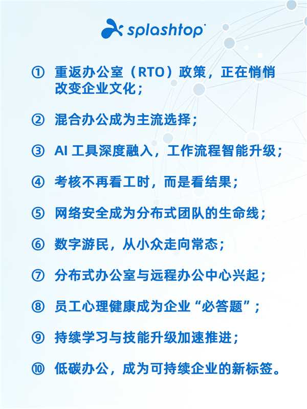 那么,到了2026年,远程办公会发展成什么样?Splashtop 梳理了未来最重要的十大趋势,帮你提前掌握未来工作的“通关密码”。