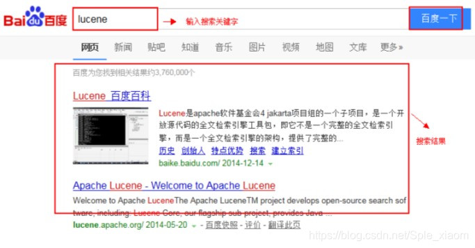 全文检索系统提供用户搜索的界面供用户提交搜索的关键字,搜索完成展示搜索结果。比如:
