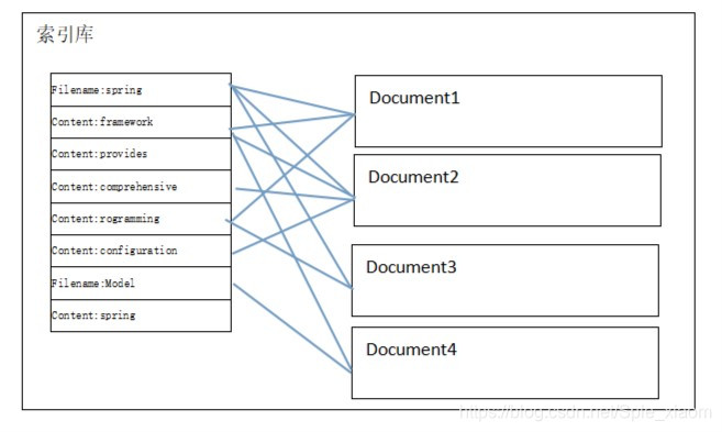 对文档索引的过程,将用户要搜索的文档内容进行索引,索引存储在索引库(index)中。