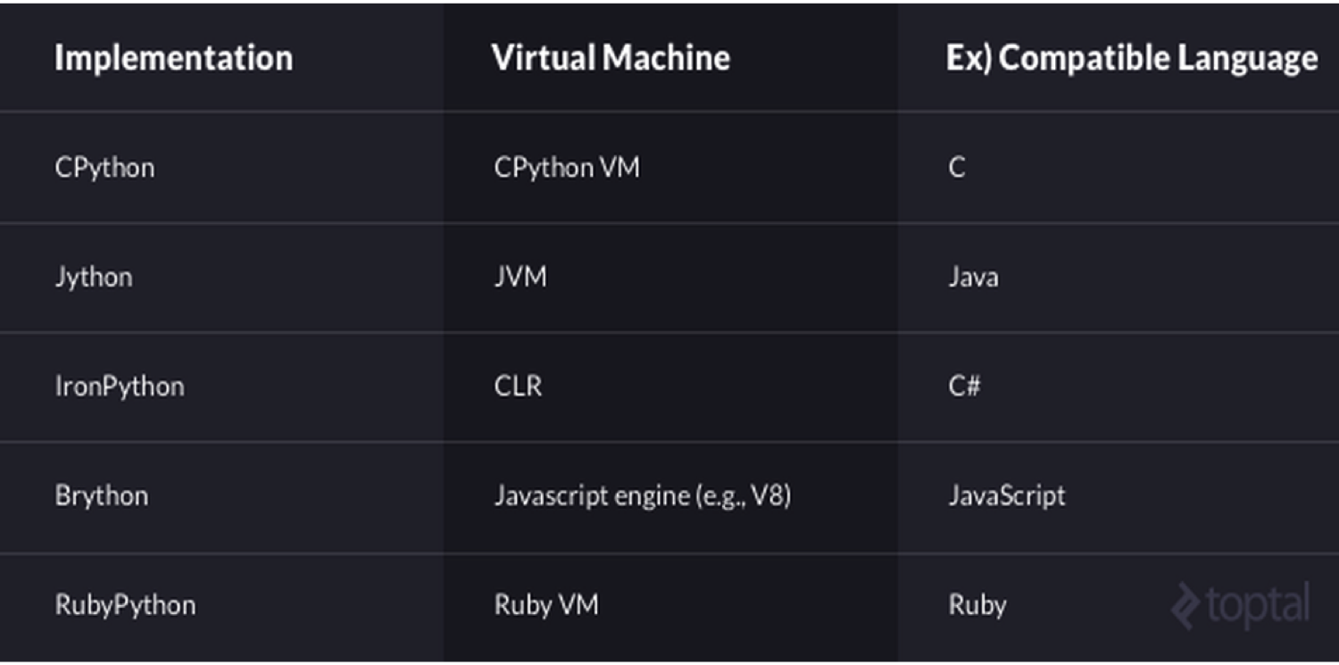 Python的官方版本,使用C语言实现,使用最为广泛,CPython实现会将源文件(py文件)转换成字节码文件(pyc文件),然后运行在Python虚拟机上。