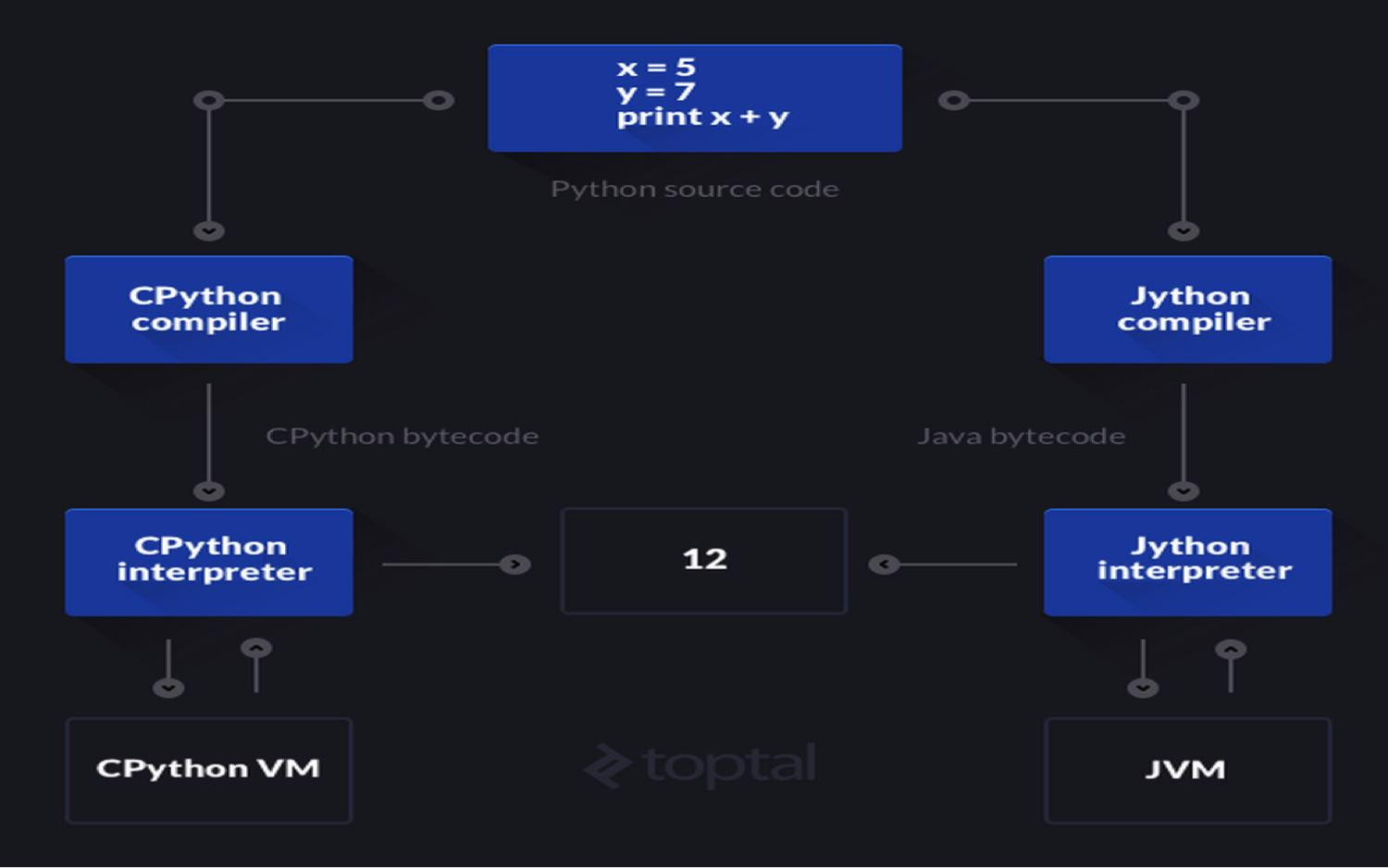Python的Java实现,Jython会将Python代码动态编译成Java字节码,然后在JVM上运行。