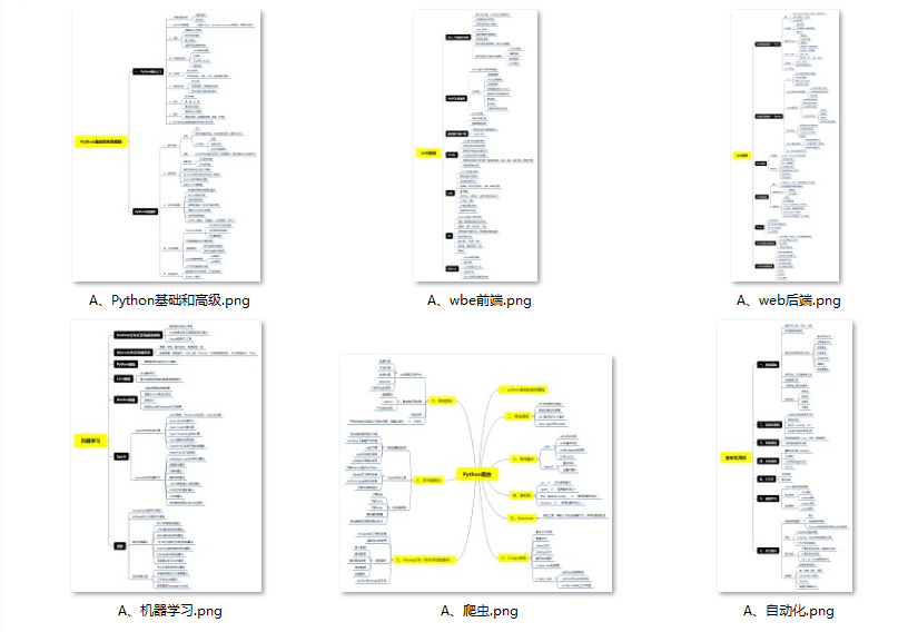 Python所有方向的技术点做的整理,形成各个领域的知识点汇总,它的用处就在于,你可以按照上面的知识点去找对应的学习资源,保证自己学得较为全面。