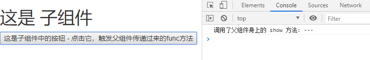 <input type="button" value="这是子组件中的按钮 - 点击它,触发父组件传递过来的func方法" @click="myclick">