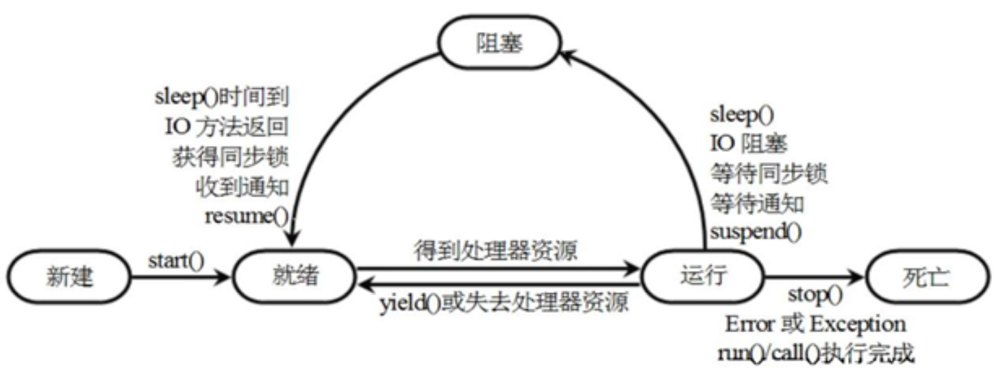 - 处于挂起状态的线程被调用了resume()恢复方法。