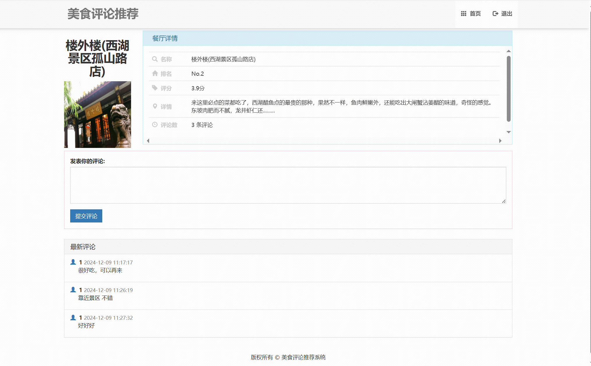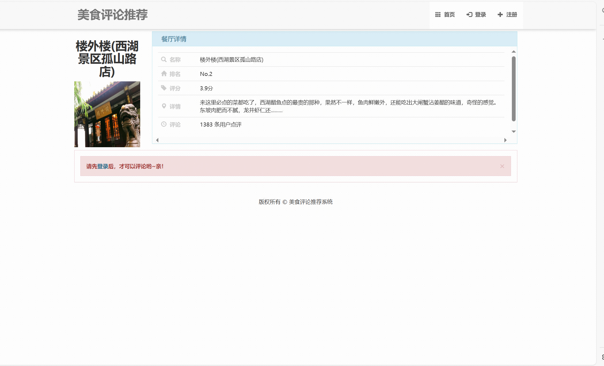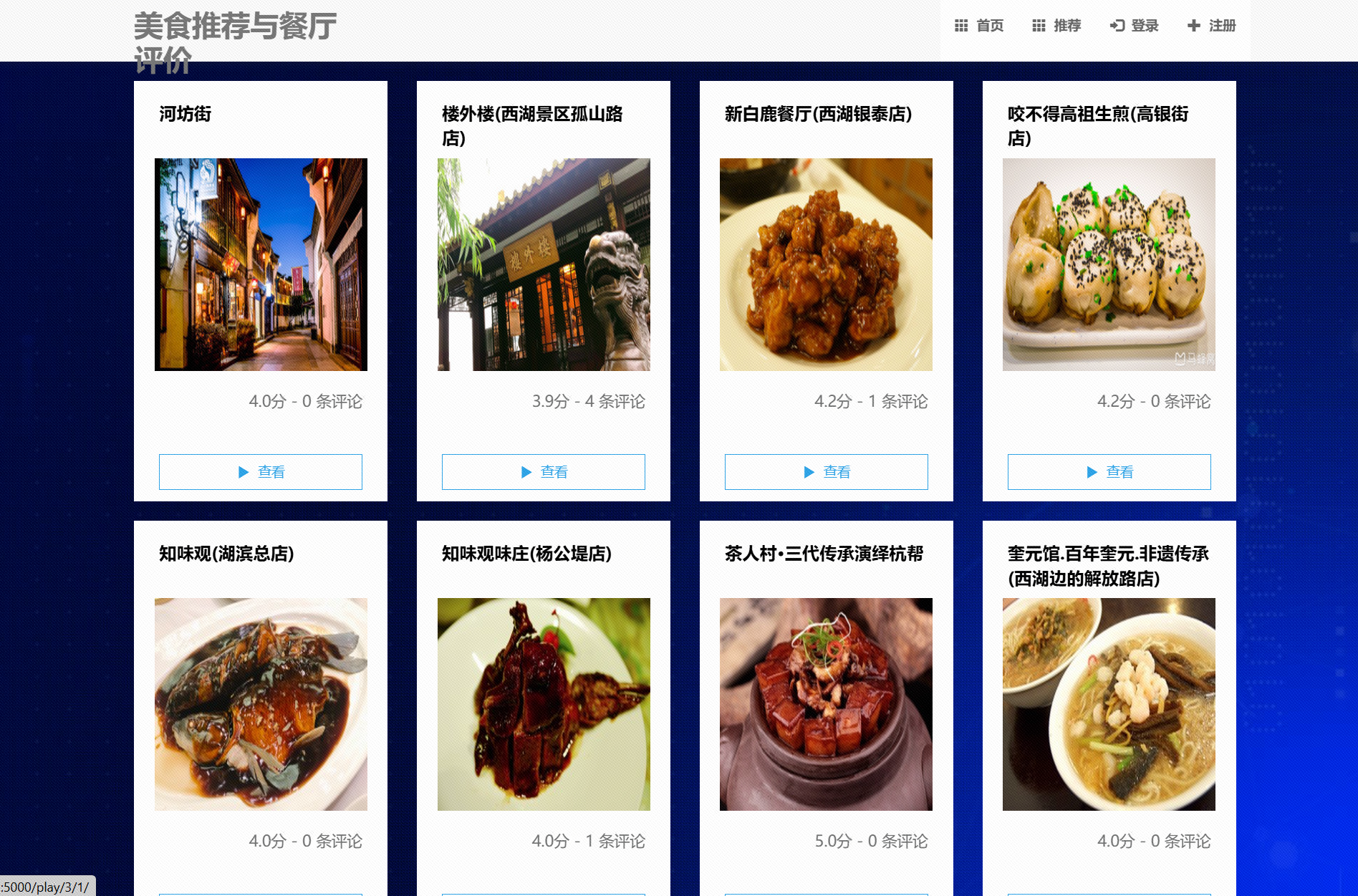 基于Flask的餐厅评价系统,有着登录注册,餐厅查看评论等功能