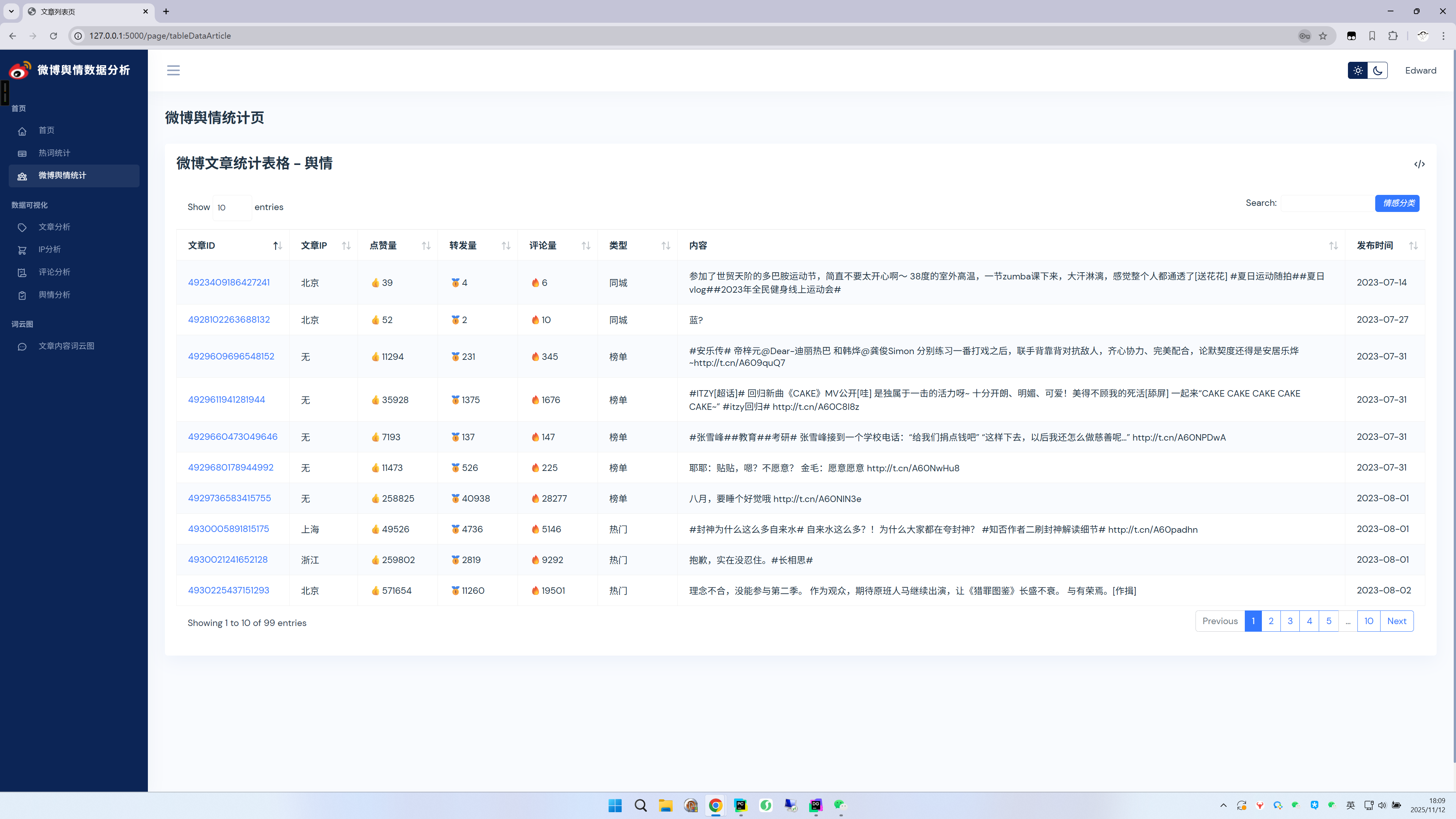 Python微博舆情分析系统