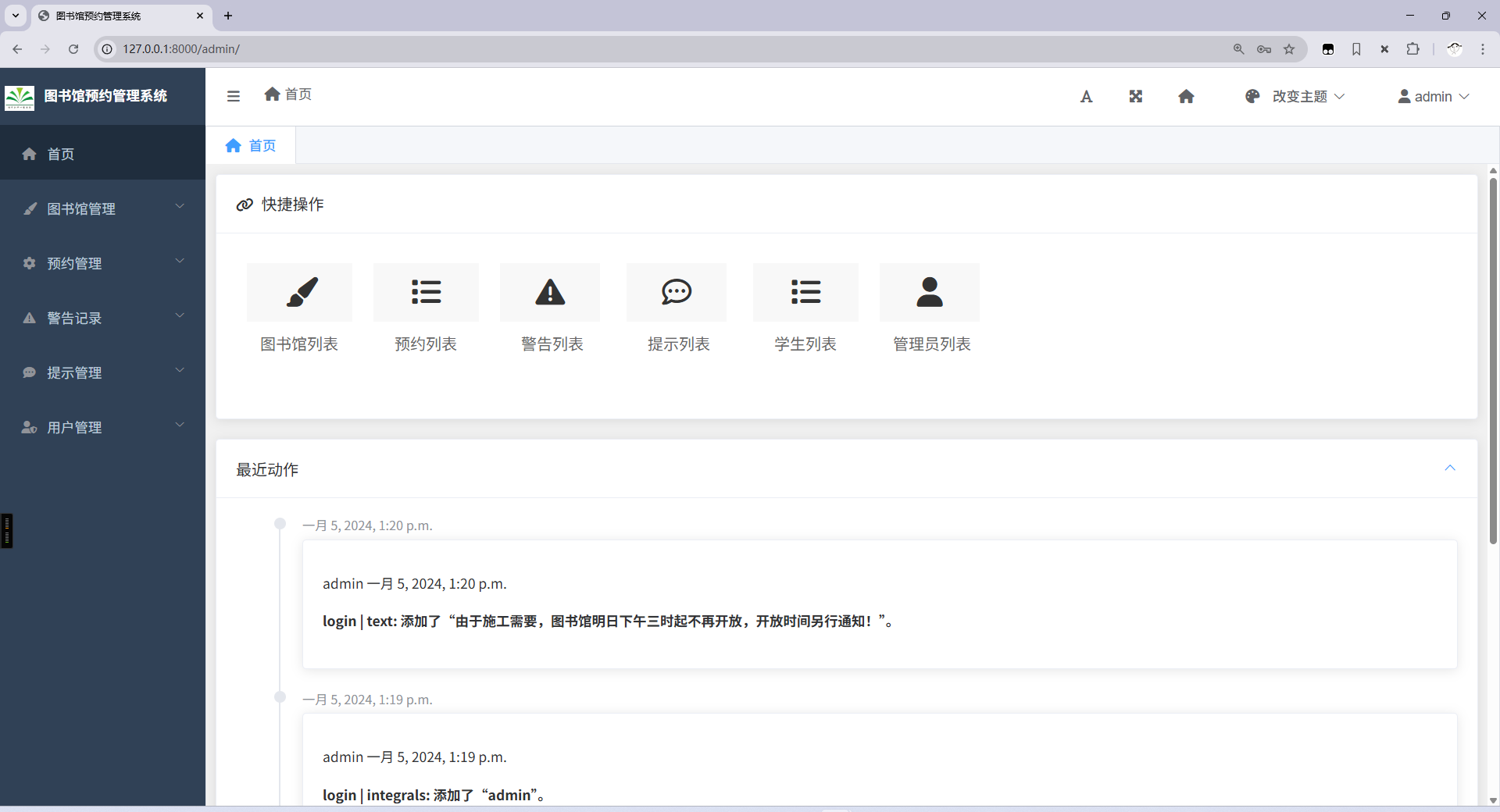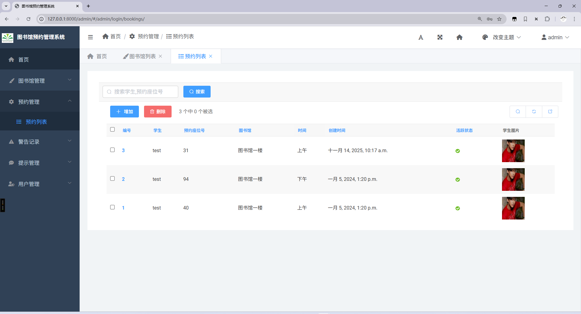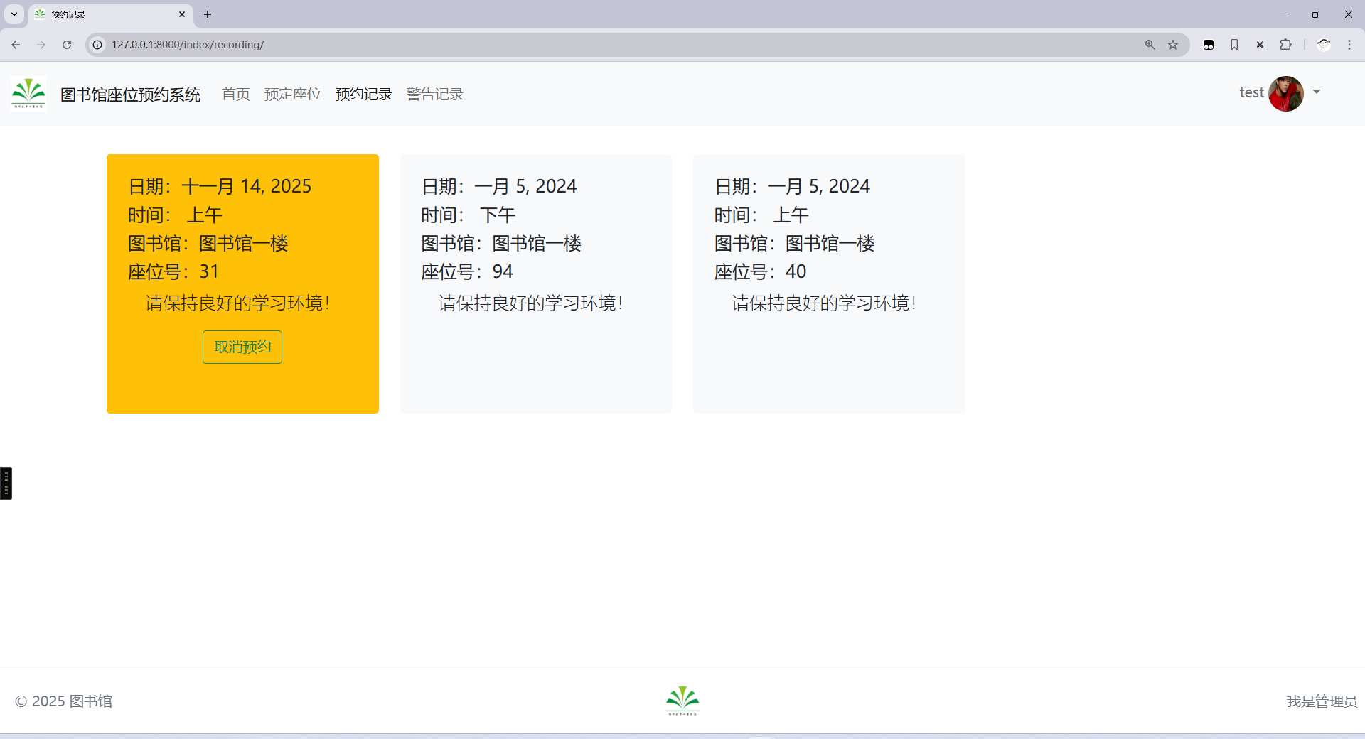 | 这是一个基于Django框架开发的图书馆座位预约管理系统。系统主要分为用户端和管理端,用户可在线预约座位、查看预约与警告记录;管理员能管理图书馆资源、处理预约及发布公告。采用Python+Django后端架构,MySQL存储数据,实现了座位的有效分配与统计管理。系统通过Django Admin与自开发界面提供服务,经完整测试,各项功能运行稳定,有效提升了图书馆座位管理的效率和用户体验。 |
