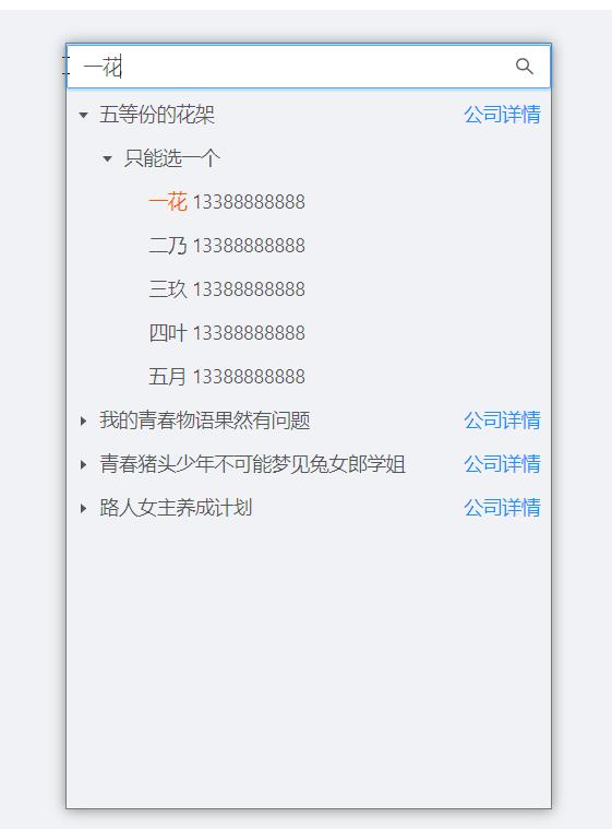 { name: '一花 13388888888', key: '一花 13388888888', scopedSlots: { title: 'title' } },
