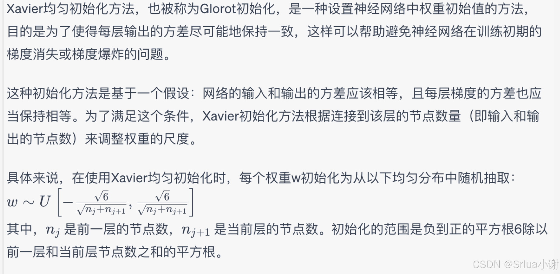这里定义了一个权重矩阵 W 并用Xavier均匀初始化方法进行初始化。nn.Parameter 表示这是一个模型可学习的参数。