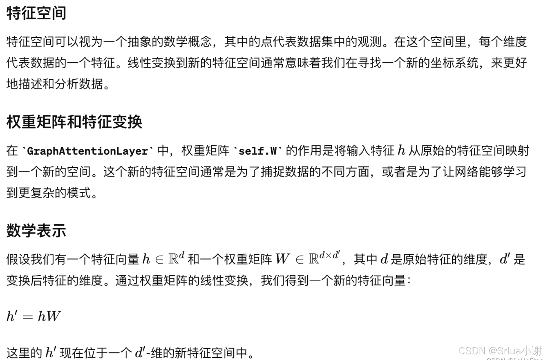 这个图注意力网络层计算每个节点的新表示,方法是考虑其邻居的特征以及与这些邻居之间的注意力权重。注意力机制允许模型动态地关注那些对当前任务更重要的邻居节点。