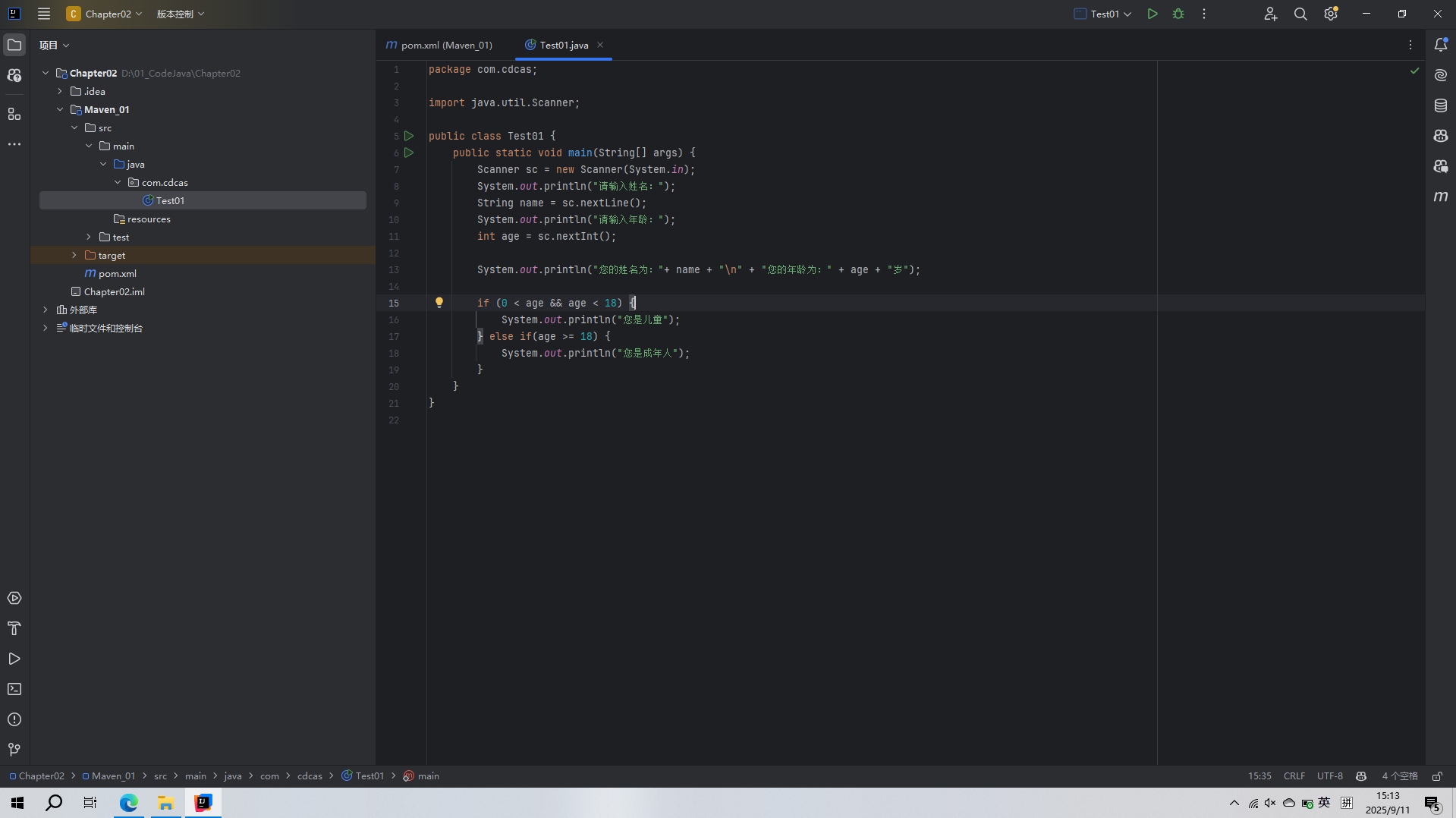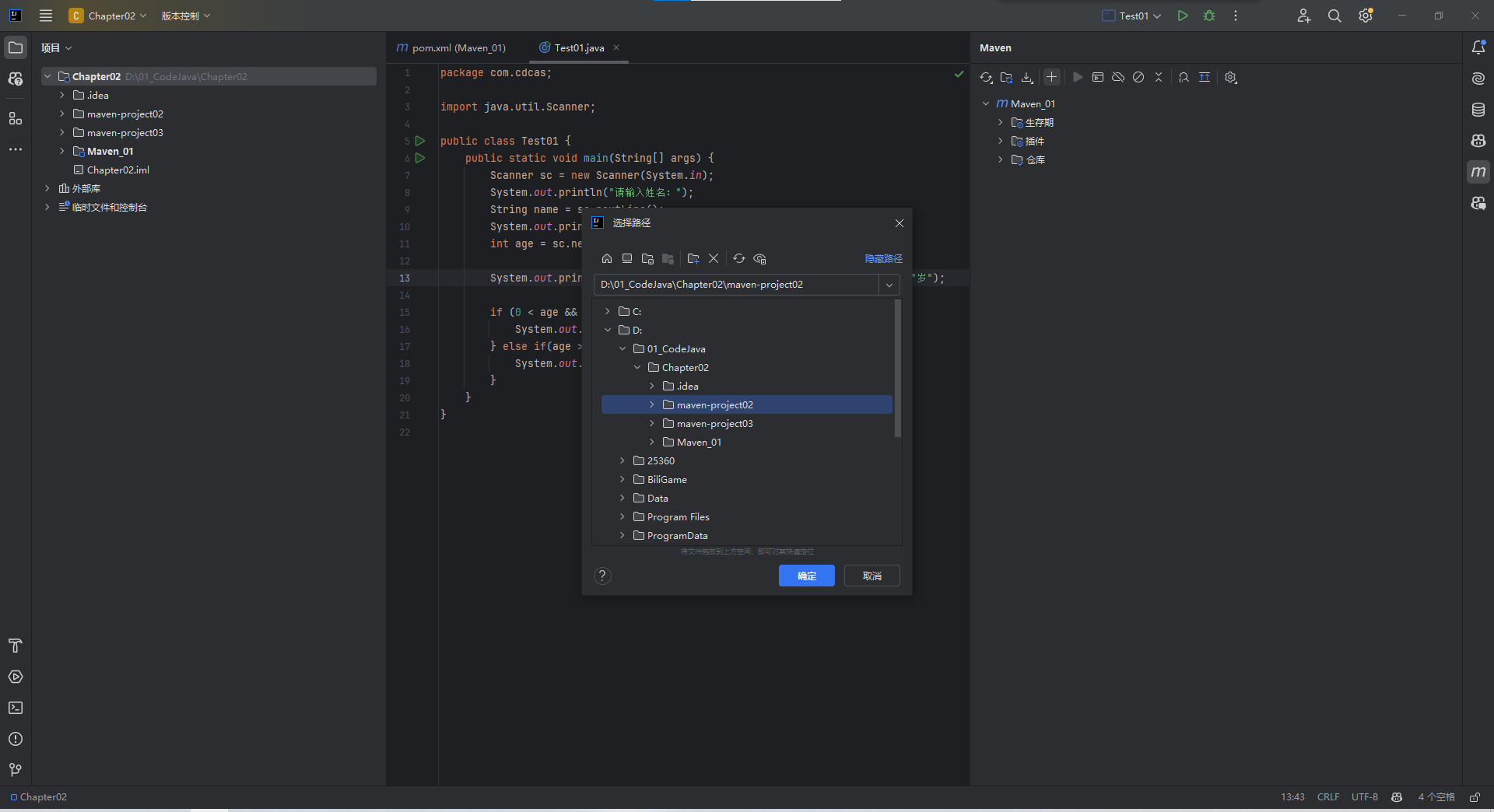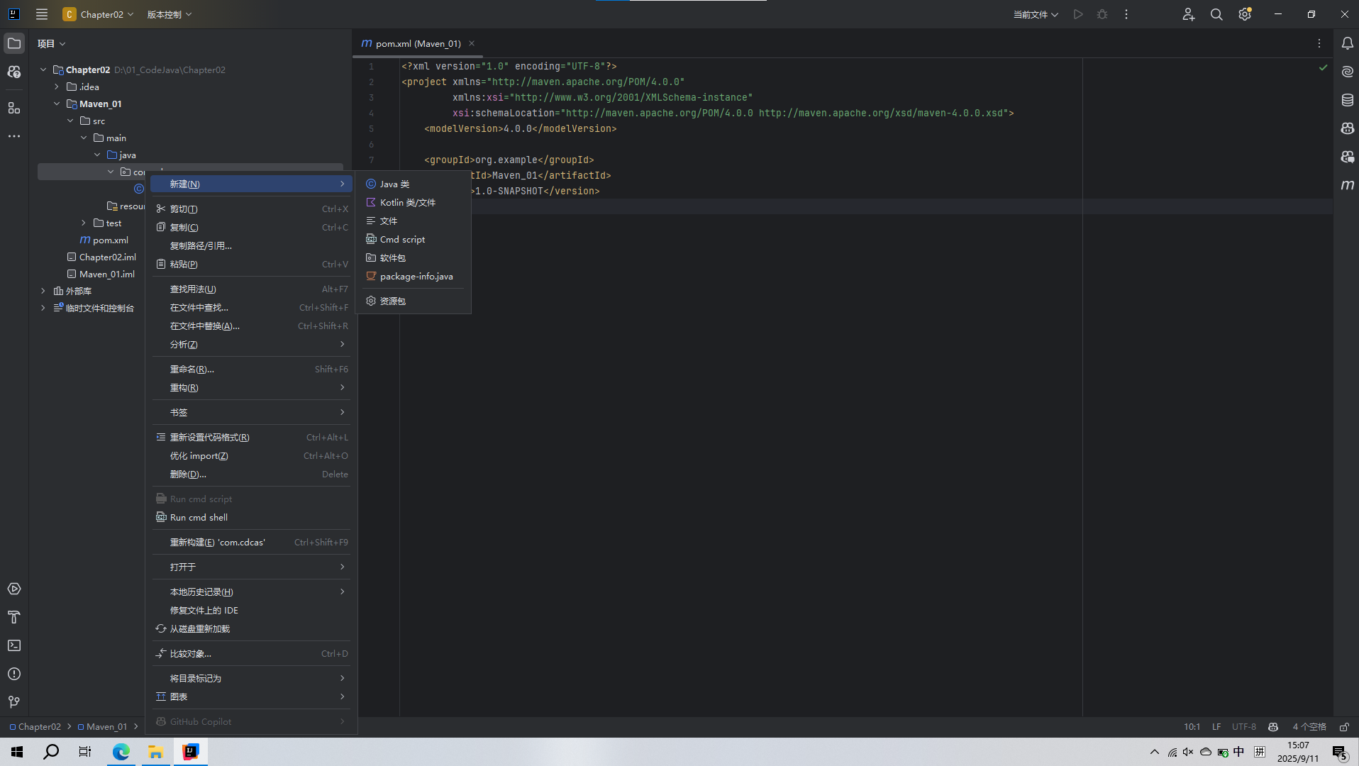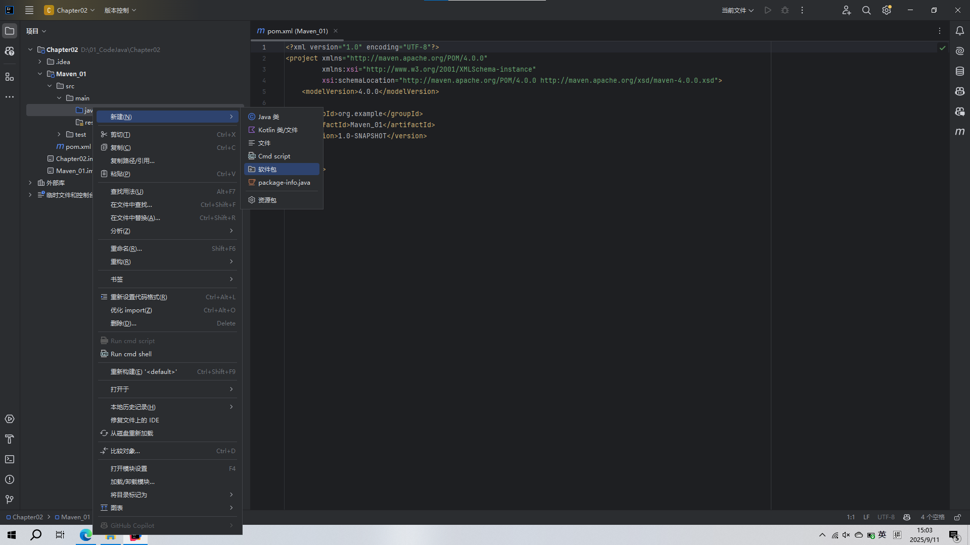 在Maven_01/src/main/java右击,新建,软件包,输入名称。