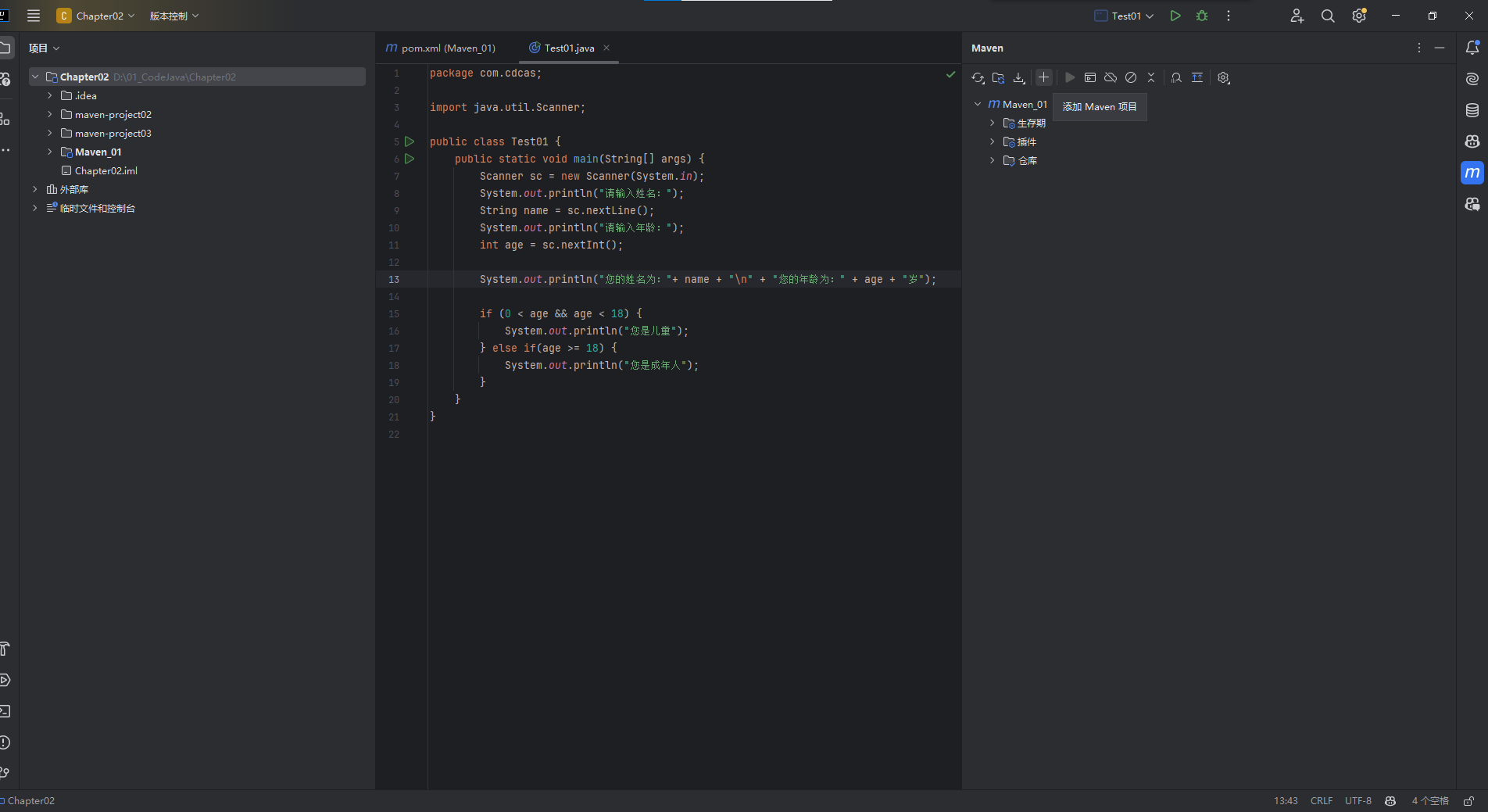 选择IDEA侧边的Maven,点击添加Maven项目,选择需要导入的模块,确定。