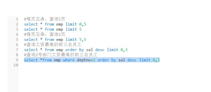 select * from emp where deptno=2 order by sal desc limit 0,3