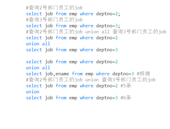 #查询2号部门员工的job union all 查询3号部门员工的job
