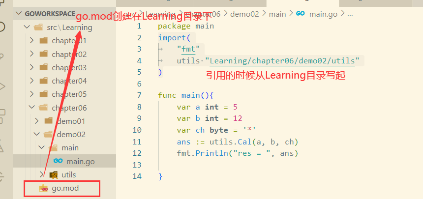 2.引入自定义包时,路径应从go.mod所在的路径下写起