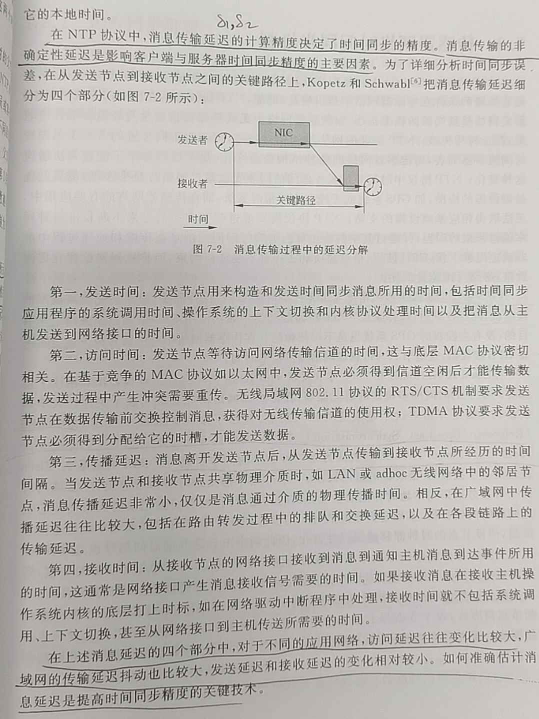 NTP 中,消息传输过程中的延迟的精度决定了时间同步的精度,延迟主要分为四个部分,以下细分析: