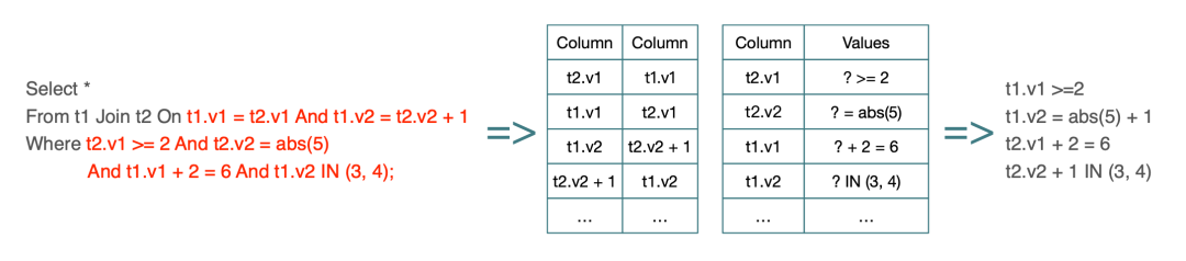 在之前的谓词下推的规则中,只能下推满足合取语义的谓词,例如 t1.v1 = 1 And t2.v1 = 2 And t3.v2 = 3 中,三个子谓词都是通过合取谓词连接,而无法下推析取语义的谓词,例如t1.v1 = 1 Or t2.v1 = 2 Or t3.v2 = 3。