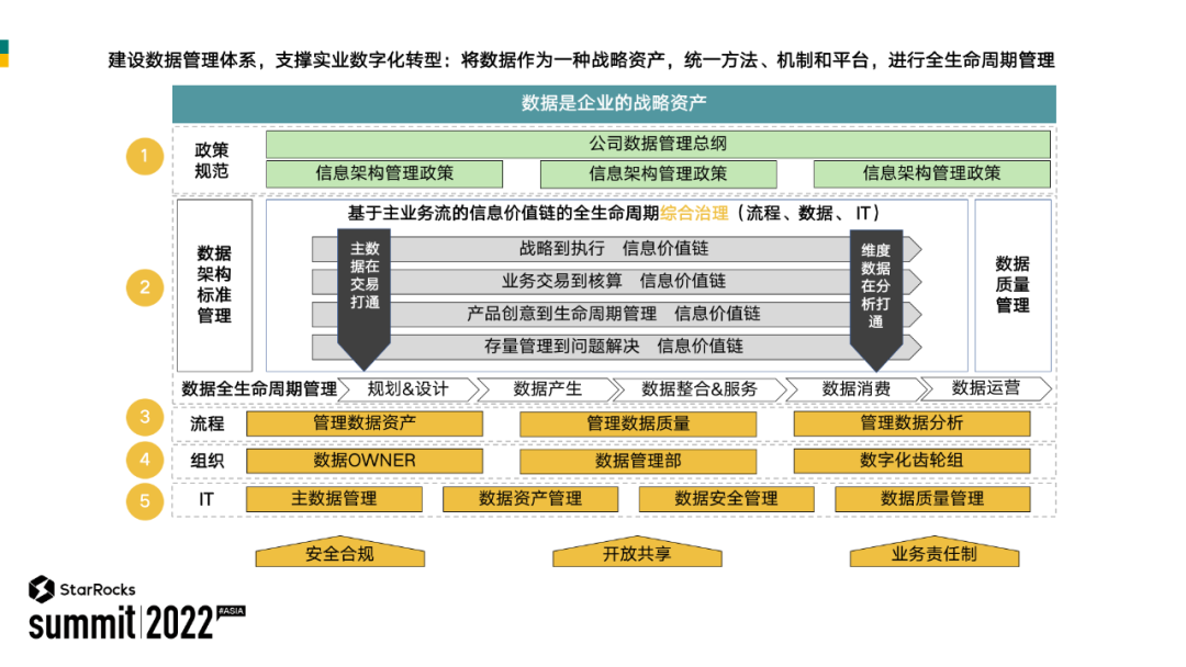 为了支撑数据从产生到后期的消费、运营,全生命周期的管理,我们在建设整个数据管理体系,包括一些政策、规范、流程组织等一些 IT 系统。