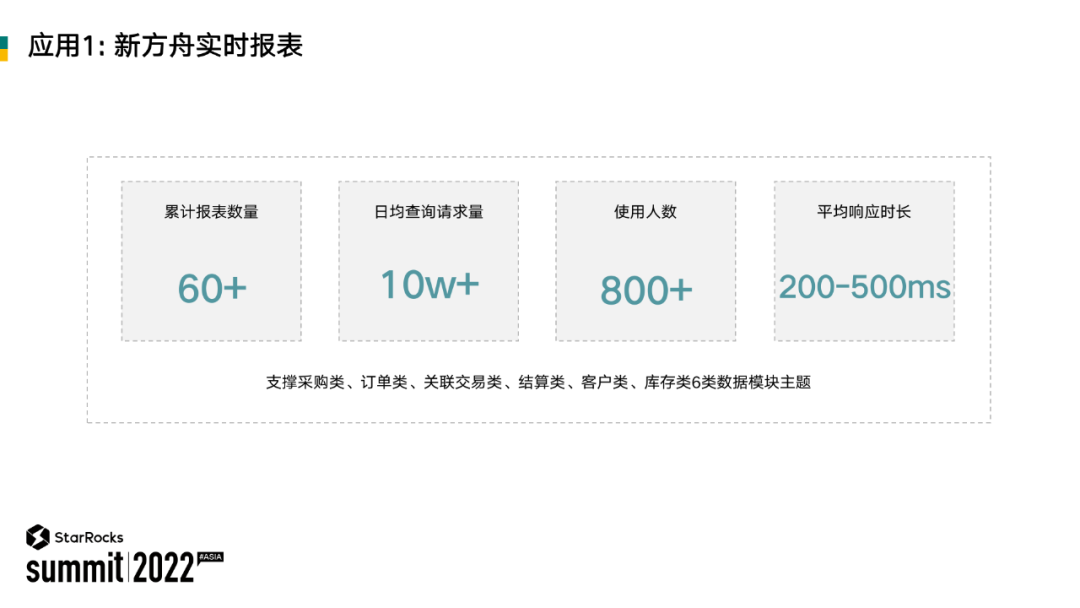 第一个场景是新方舟的实时大屏,我们基于 StarRocks 构建了实时数仓,去支撑实时数据的分析,体现的是 StarRocks 的时效性和高并发。