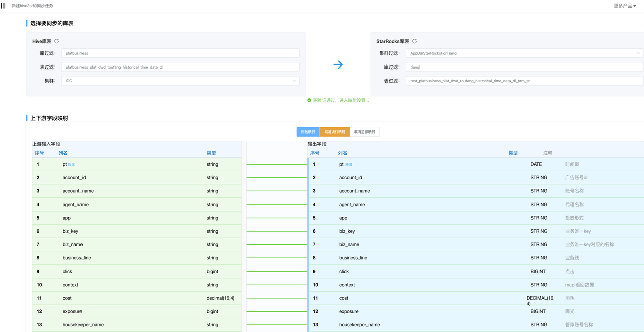 增量数据同步:通过 Flink 任务同步至 StarRocks,保障迁移过程中数据不丢失、延迟低,实现业务 “无感迁移”。