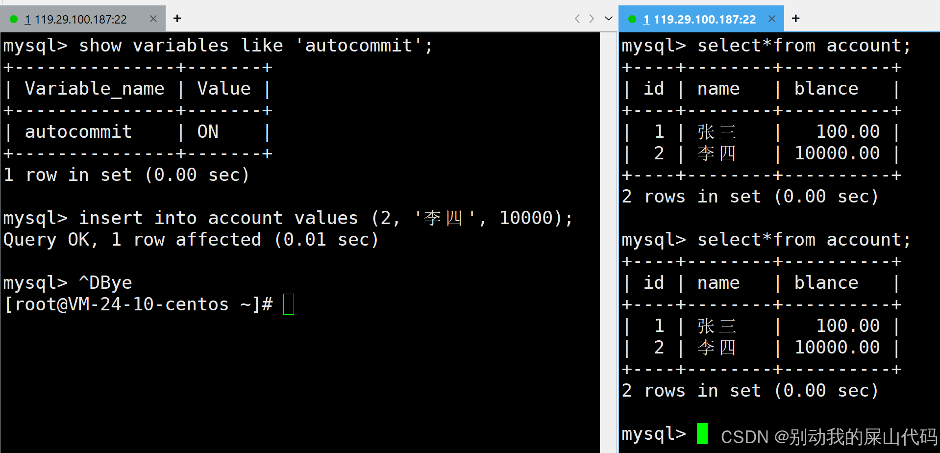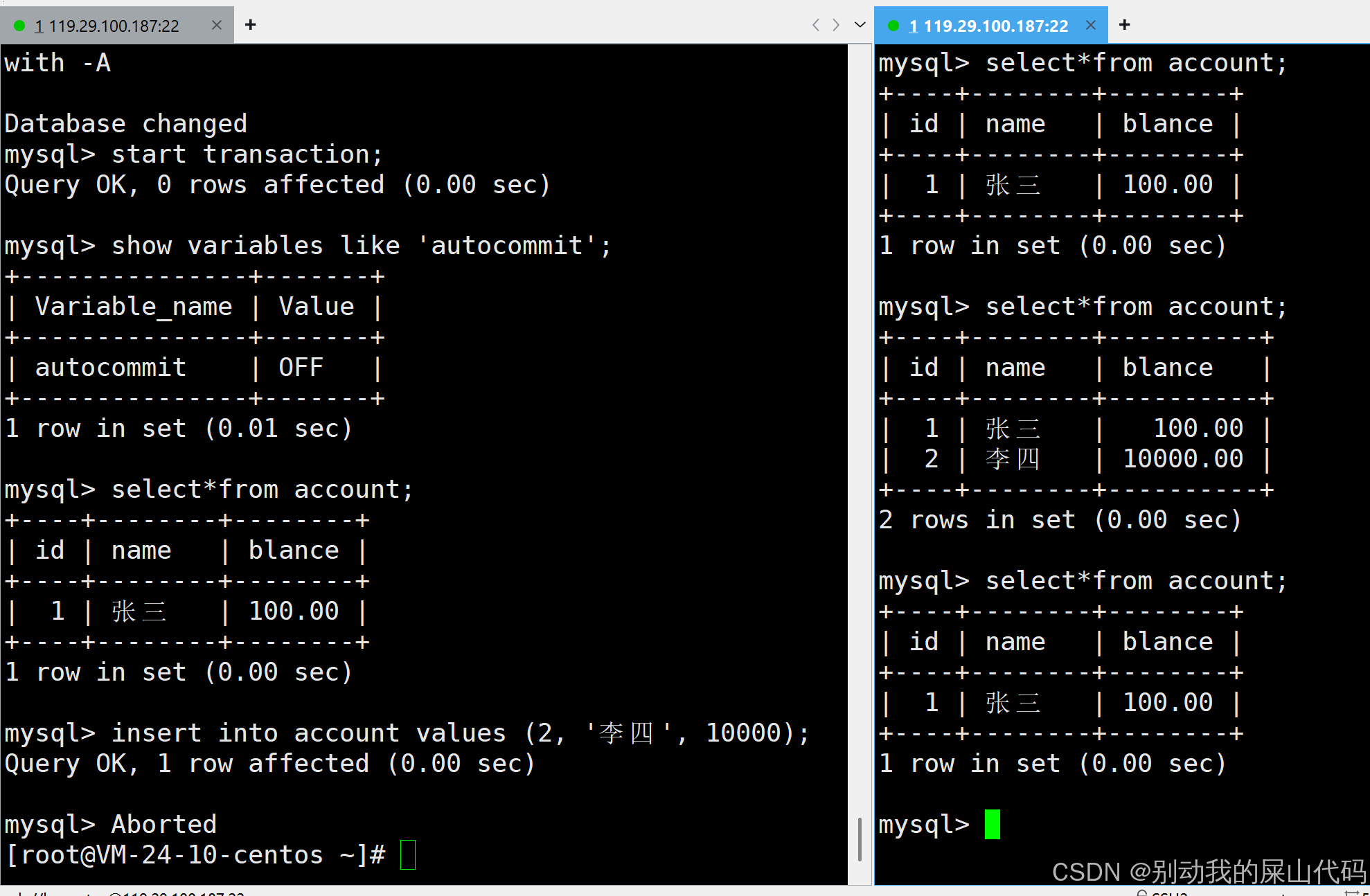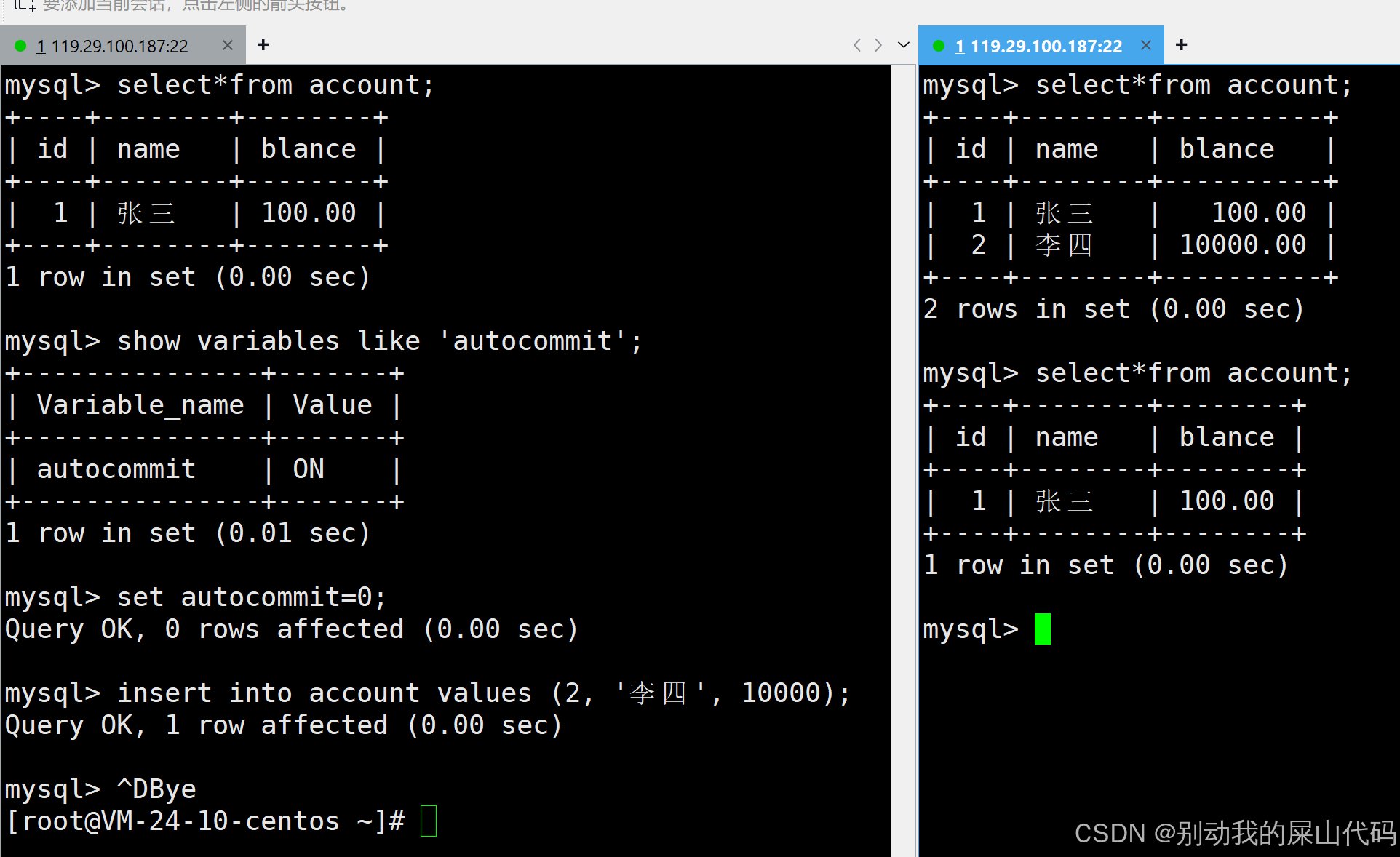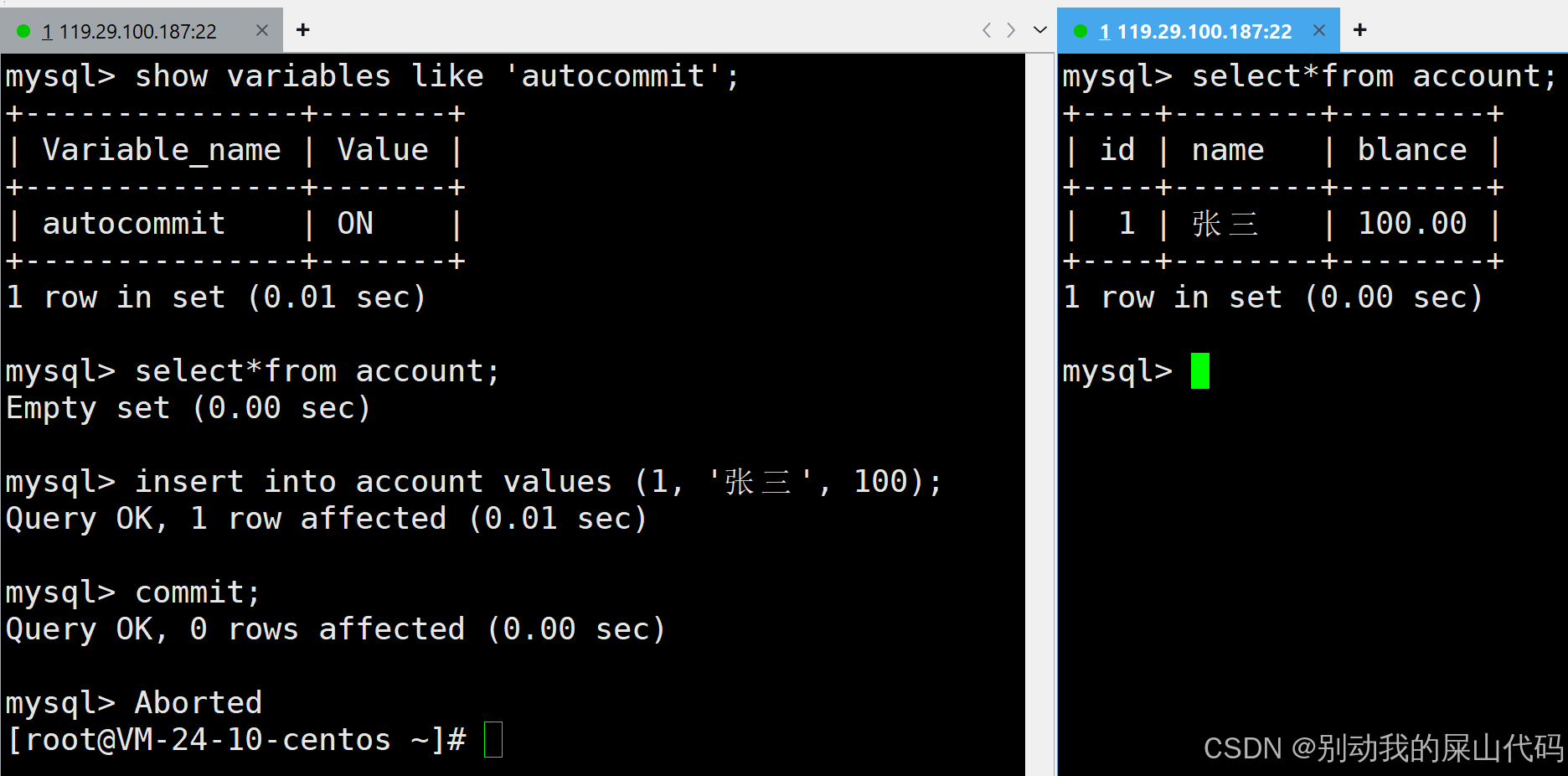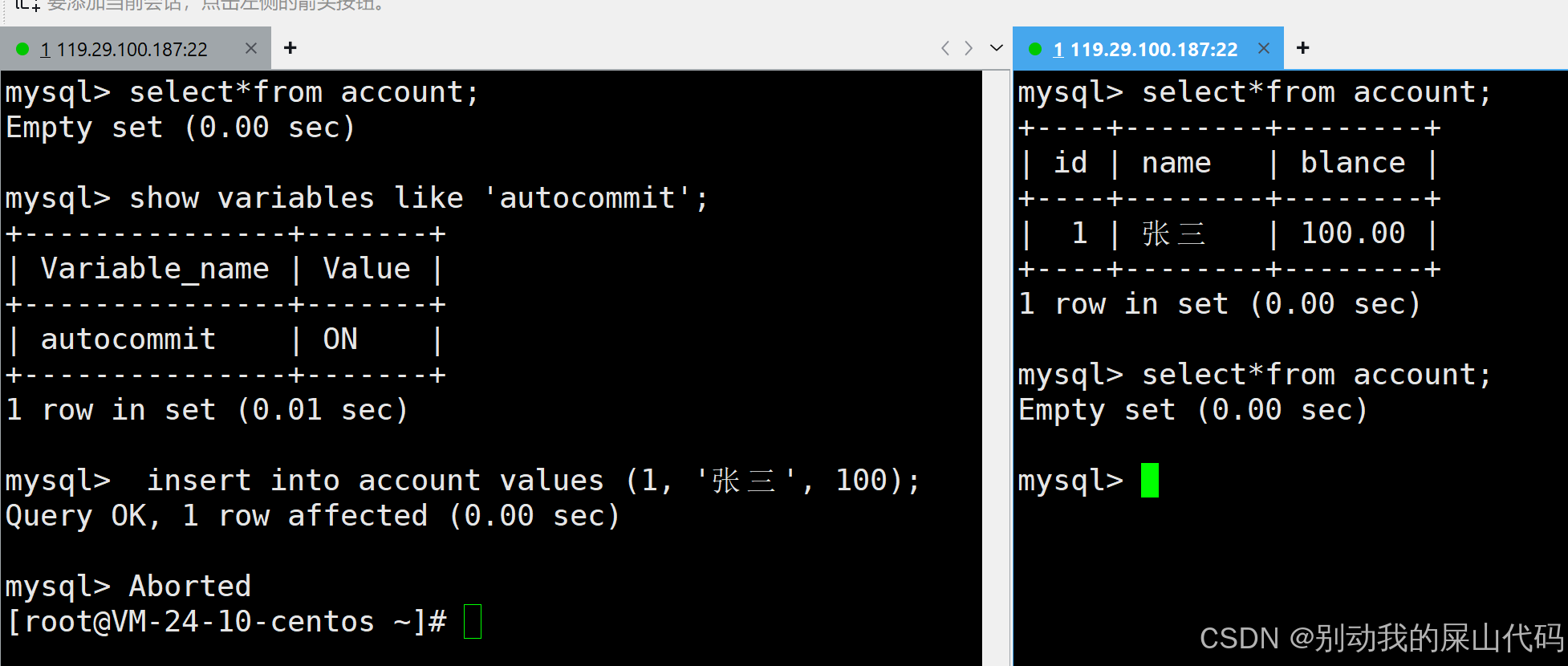 当然这个地方是可以关闭自动提交的 我只演示一下 但是后续操作还是在环境是自动提交打开的环境下进行的