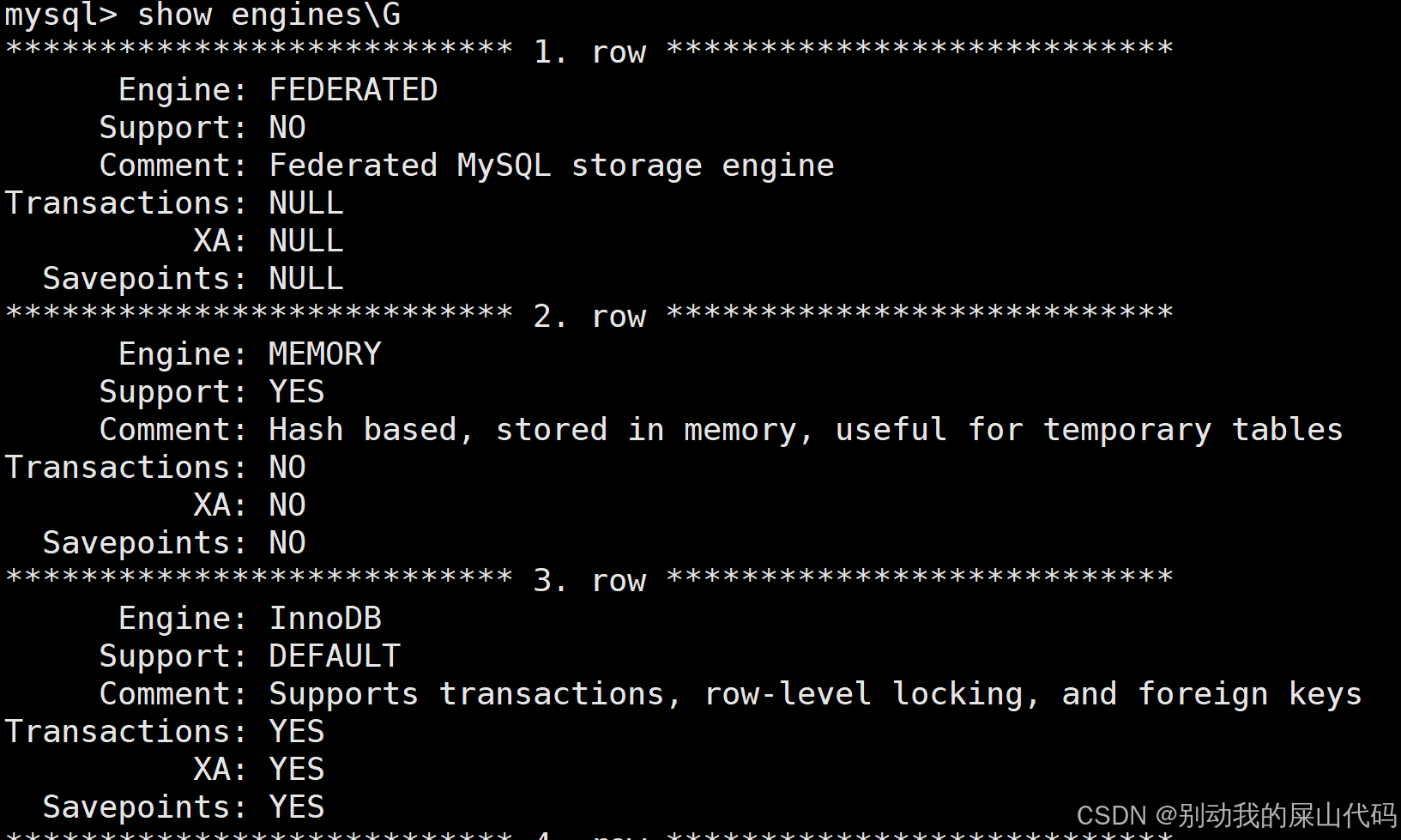 我们可以查看哪些数据库引擎支持事务