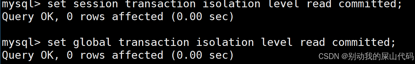 比如我们这个地方可以通过代码将会话隔离级别和全局隔离级别修改成读提交