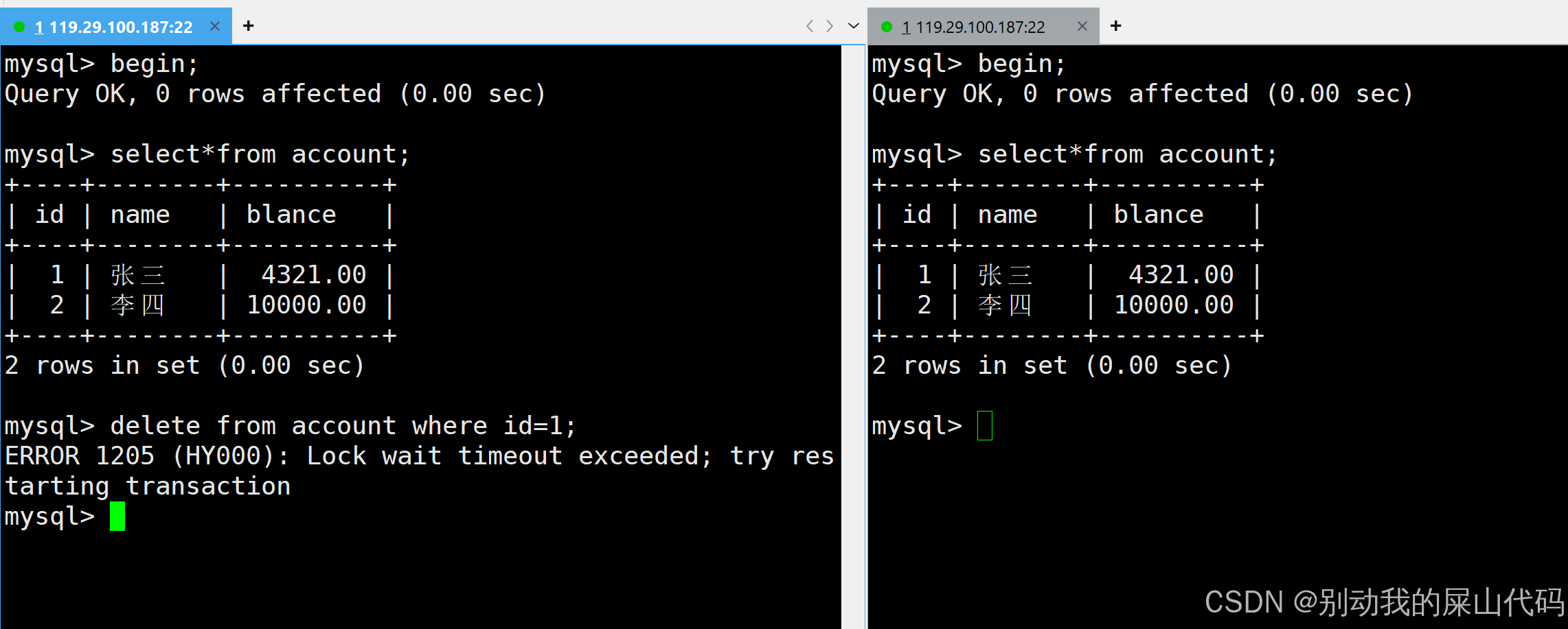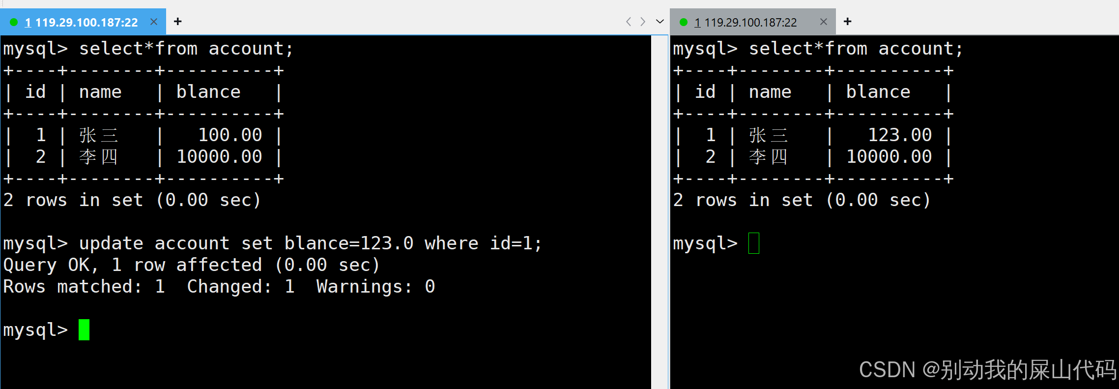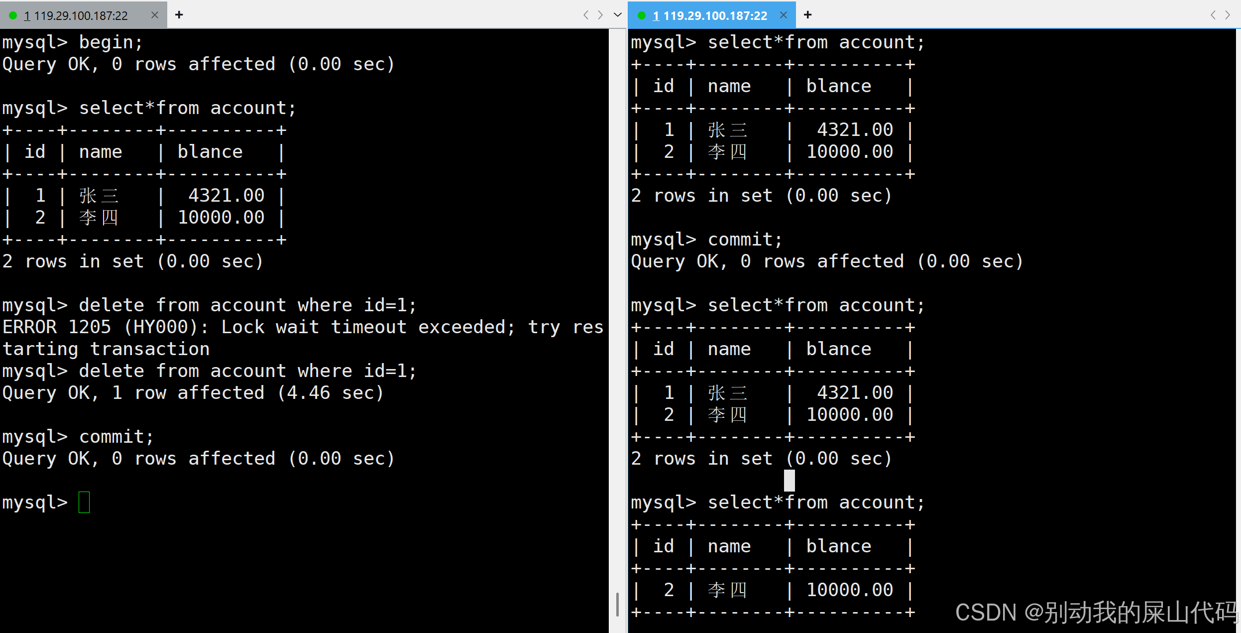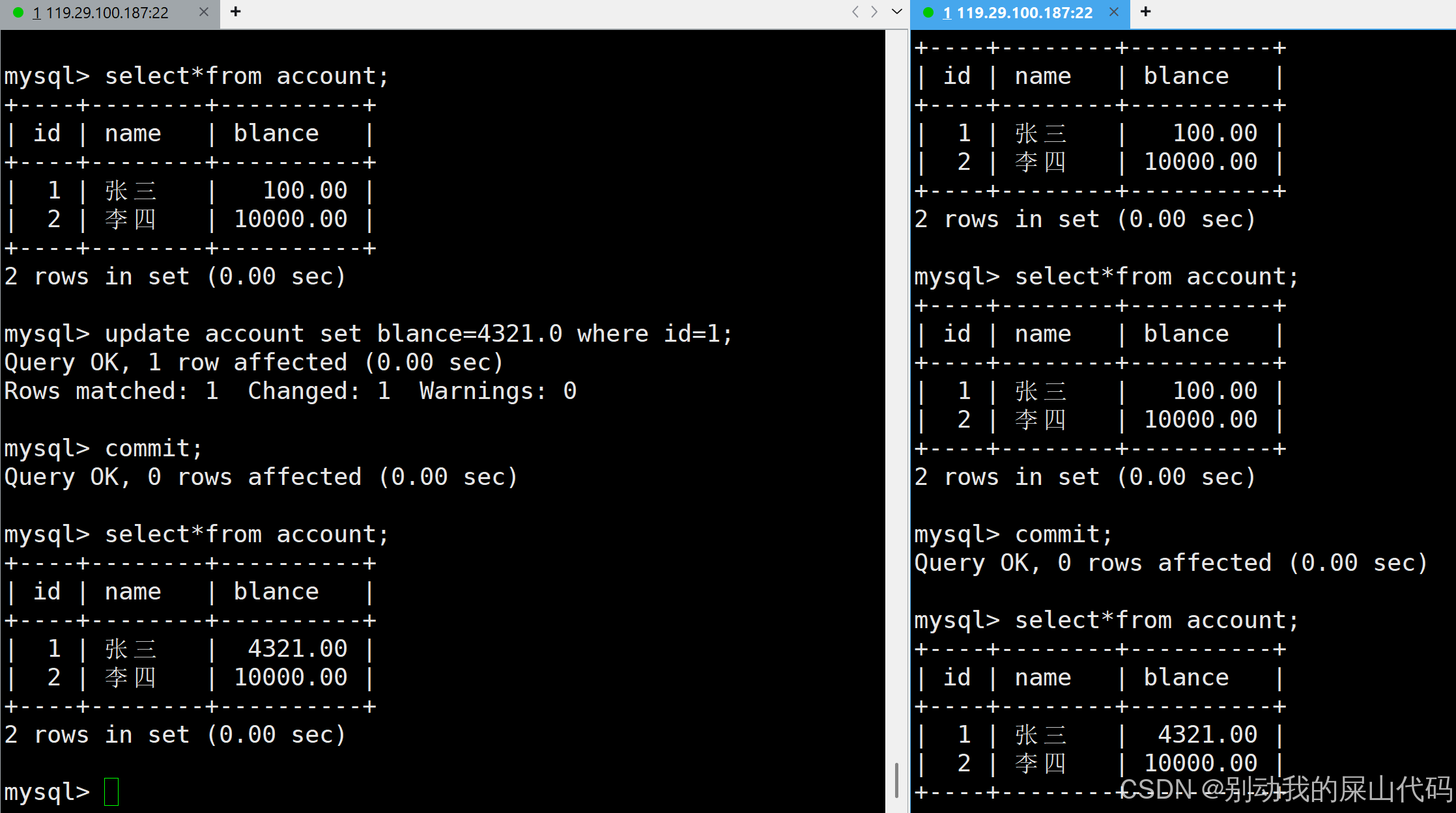 --可以看到,在终端左边中,事务无论什么时候进行查找,不管终端b事务发生啥看到的结果都是一致的,这叫做可重复读!