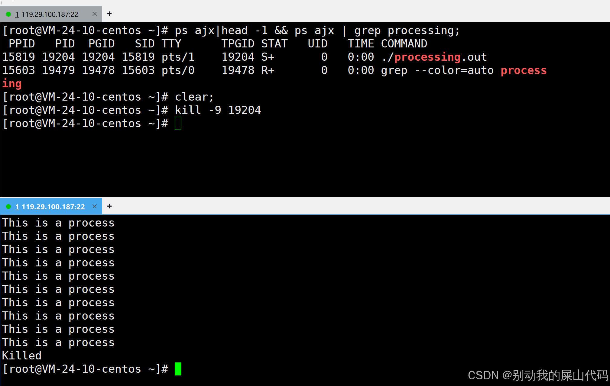 当是当我们ctrl c强制把这个c程序停下来 再查看和processing有关的进程