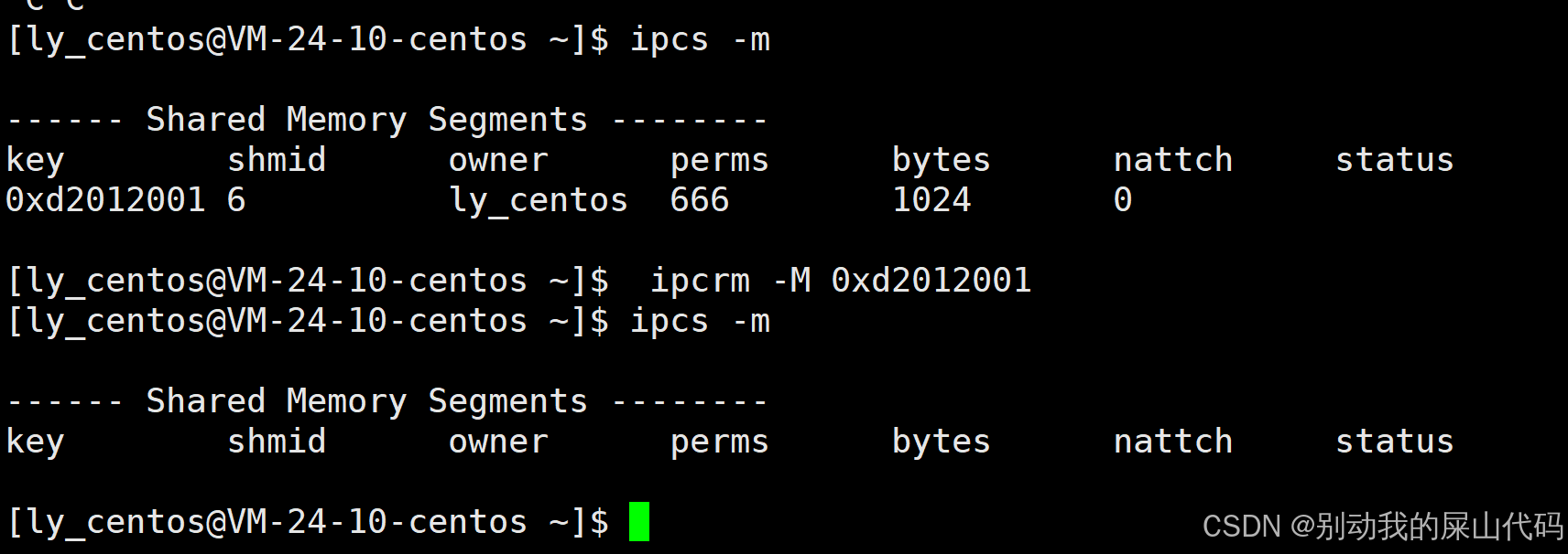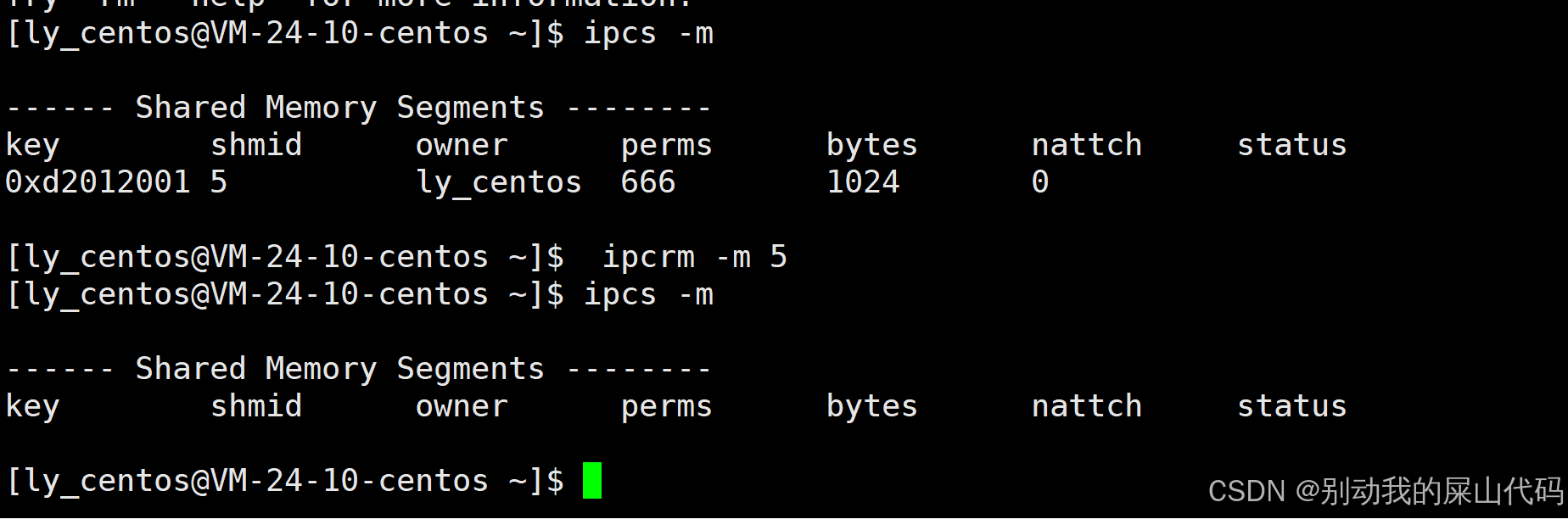 核心功能:对共享内存执行管理操作,核心场景是通过IPC_RMID标记删除 —— 标记后,共享内存不再允许新进程附加,等所有已附加的进程都分离后,内核自动释放该共享内存。