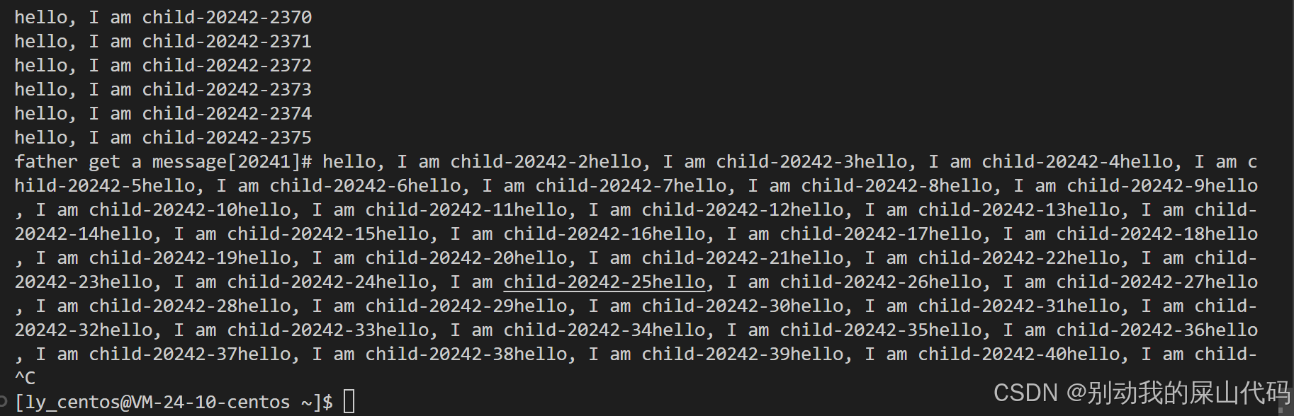 cout << "father get a message[" << getpid() << "]# " << buffer << endl;