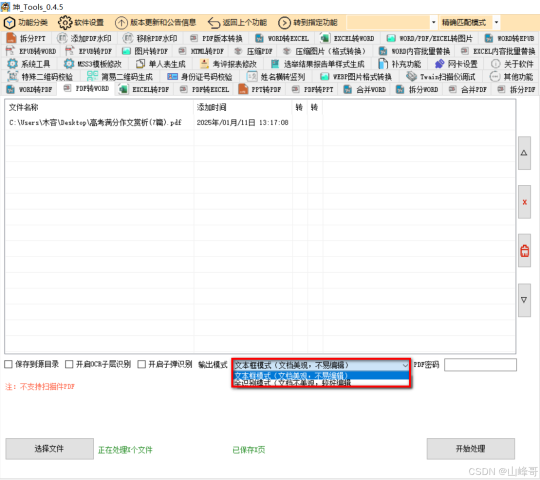 在一个忙碌的下午,小李正为一份紧急的报告焦头烂额。他需要将一份重要的Word文档转换成PDF格式,以便发送给客户,同时,他还需要将几个PDF文件合并成一个,再拆分其中的某些页面进行单独处理。更棘手的是,他还需要将一份Excel表格中的数据批量替换,并转换成PDF格式。面对这一连串的任务,小李感到力不从心,时间紧迫,他急需一个能够高效解决这些问题的工具。就在这时,同事小王向他推荐了一款名为“办公必备神器”的软件,小李试用后,不禁感叹:“这简直就是我的救星啊!”那么,办公必备神器究竟有何神奇之处,能够如此轻松地解决小李的难题呢?接下来,就让我们一起走进坤_Tools的世界,探索它的强大功能。