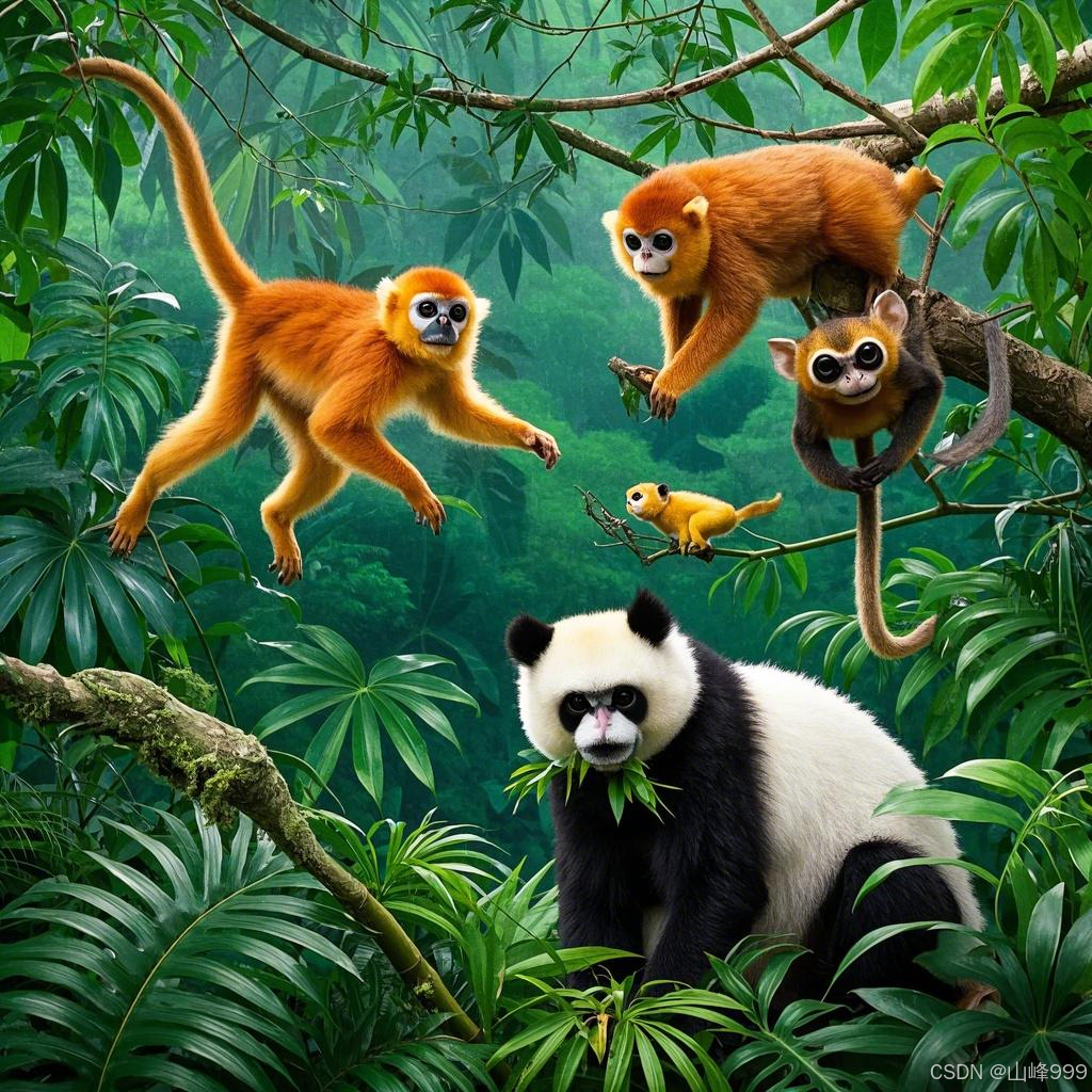热带雨林不仅是植物的王国,更是动物的乐园。在这片茂密的丛林中,生活着无数珍稀而独特的动物,它们共同构成了一个复杂而精细的生态系统。金丝猴在林间跳跃,它们金色的毛发在阳光下闪耀,如同林间跳跃的精灵;大熊猫则悠闲地啃食着竹子,那憨态可掬的模样让人忍俊不禁;懒猴挂在树枝上,用它那双充满好奇的眼睛观察着周围的世界,享受着属于它的宁静时光。此外,还有无数的鸟类、爬行动物和昆虫在这片雨林中繁衍生息,它们或高歌或低吟,或疾驰或隐匿,共同演绎着生命的赞歌。