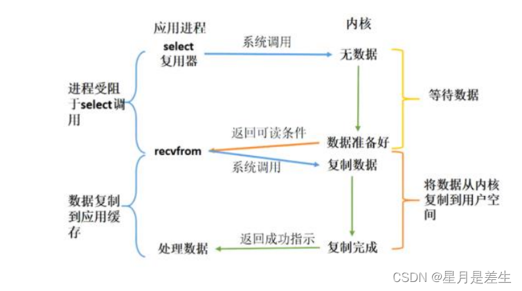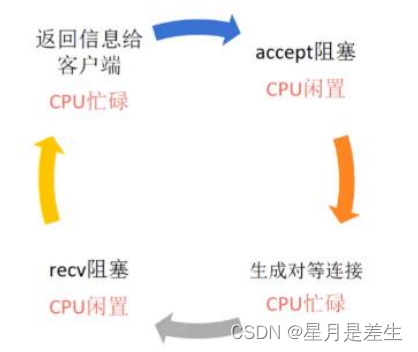 复用器不需要进行大量的IO操作,复用器会告诉你哪个是对等连接套接字有数据过了,然后去处理即可.