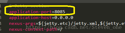第二个修改的地方:找到D:\Maven\nexus-2.14.0-01-bundle\nexus-2.14.0-01\conf目录下的nexus.properties文件,打开修改端口号,注意这个端口号必须没有没占用,否则有问题: