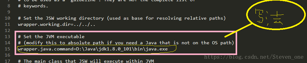 两个修的地方,第一个修改的地方:找到D:\Maven\nexus-2.14.0-01-bundle\nexus-2.14.0-01\bin\jsw\conf下的wrapper.conf文件,打开它,并在wrapper.conf文件中配置jdk路径 wrapper.java.command,修改为你安装JDK的bin路径。大概在第15行。