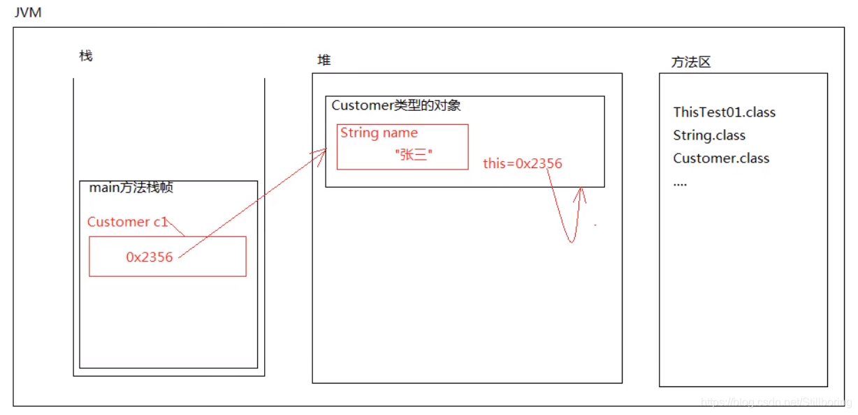 this是一个引用,保存当前对象的内存地址,指向自身。