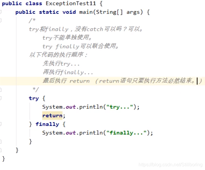 就是说,即使实际上是按照try、finally、return顺序执行的,但是程序返回的的结果是按自上而下的顺序执行出的结果。