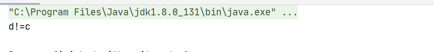 System.out.println("d!=c");