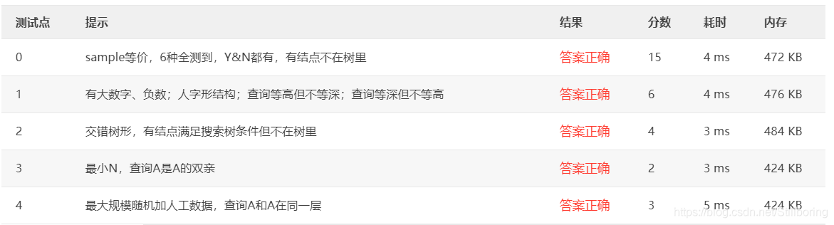 给定一系列互不相等的整数,将它们顺次插入一棵初始为空的二叉搜索树,然后对结果树的结构进行描述。你需要能判断给定的描述是否正确。例如将{ 2 4 1 3 0 }插入后,得到一棵二叉搜索树,则陈述句如“2是树的根”、“1和4是兄弟结点”、“3和0在同一层上”(指自顶向下的深度相同)、“2是4的双亲结点”、“3是4的左孩子”都是正确的;而“4是2的左孩子”、“1和3是兄弟结点”都是不正确的。