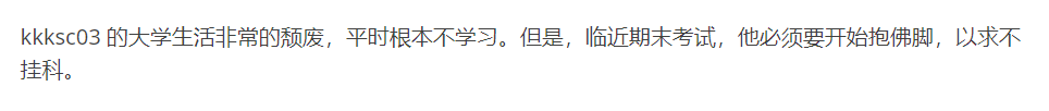 要使用动态规划求解(01背包),设DP[]为数组,将背包的大小设置为单科所有题的时间总花费T的一半T/2,然后把题看作重量为t,价值为t的物品(t为该题花费的时间),这样就可以求出最接近T/2的数。最后求出的DP[T/2]就是最接近T/2的时间花费。最终结果是取最接近T/2中较大的那个,所以结果是 max{DP[T/2],T-DP[T/2]}
