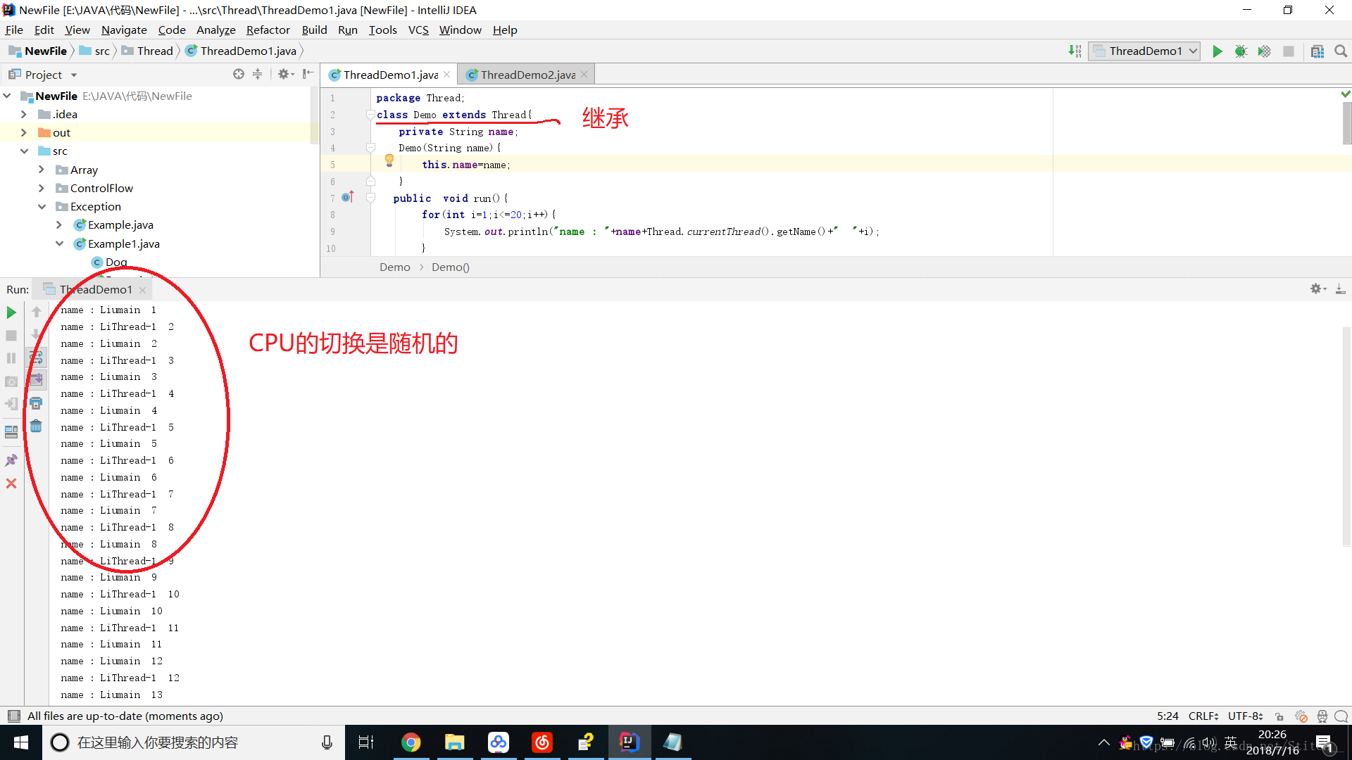 【当栈中有多个线程时,CPU会在线程间随机的切换(执行是随机的/CPU在某一时刻是不可能同时执行多个程序的)】