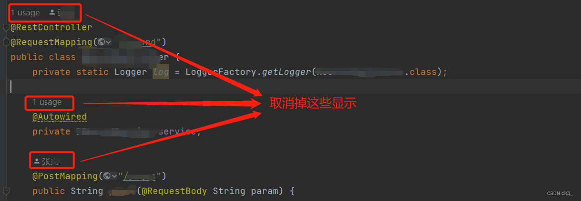 IDEA隐藏方法/属性/自动注入等git的提交人显示