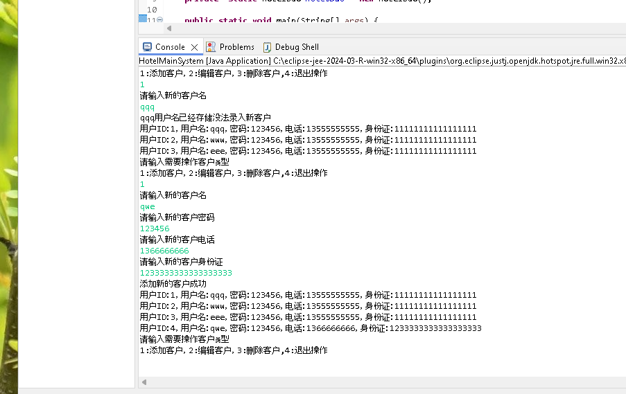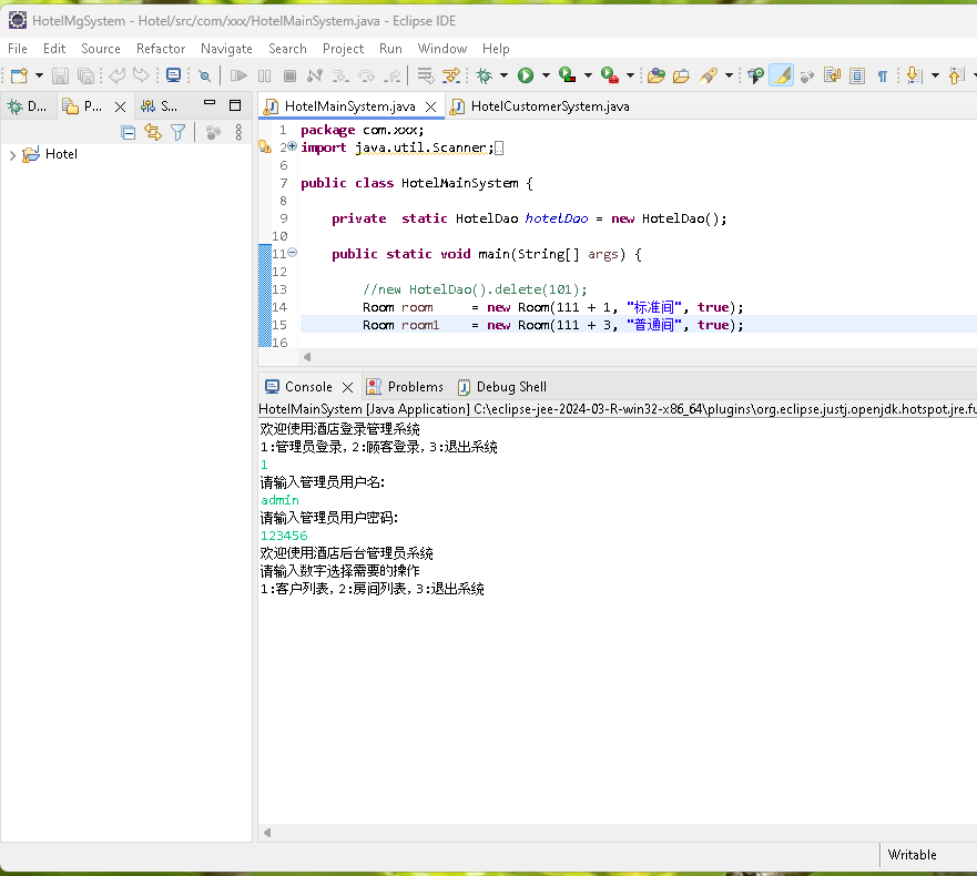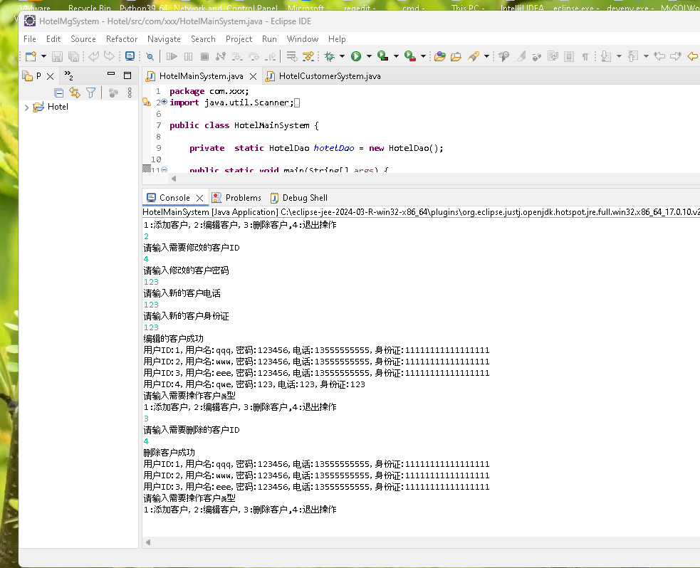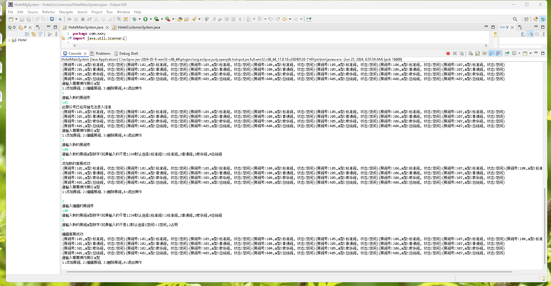 帮助客户做控制台版在线酒店管理系统Demo时,用Eclipse+JDK搭环境,纯Java控制台开发,没加数据库省了不少配置功夫。核心功能是业务逻辑crud开发。全程靠控制台输入输出交互,界面虽简单但功能得全。看着输入指令就能顺畅管理房间状态,从预订到退房流程跑通,还挺有成就感,也摸清了控制台系统的开发门道。