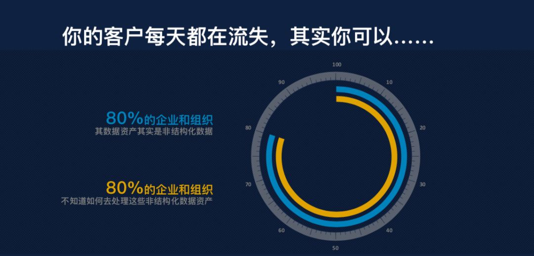 除了常规的数字、时间、类别等结构化数据,还有包括文本、语音在内的大量非结构化数据。而更深层次的价值往往是蕴含在非结构数据中的。我们知道,结构化数据的处理非常简单,一个excel就可以轻松解析数据背后的蕴意,但是非结构化数据分析成了困扰很多企业的难题。
