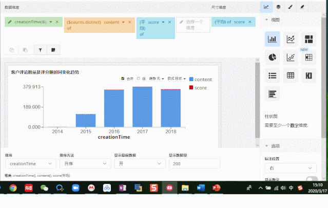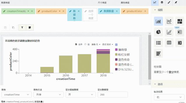 折线图中新增“组合图形”模式(show barline),勾选了该选项,可以同时通过柱状图和折线图查看数据数量及变化趋势。