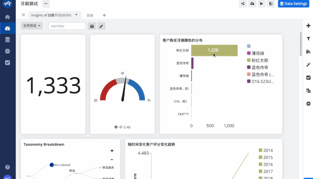 我们从用户体验的角度出发重新设计了数据分析工作流,依照用户的操作习惯,将连接数据、部署分析模型以及数据可视化的配置环节统一设计在一个统一面板中,真正实现了一站式的数据分析与洞察!