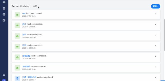 在主页,您还可以注意到有关最新活动的通知视图,您可以快速查看在仪表板和数据流中的最新活动轨迹。